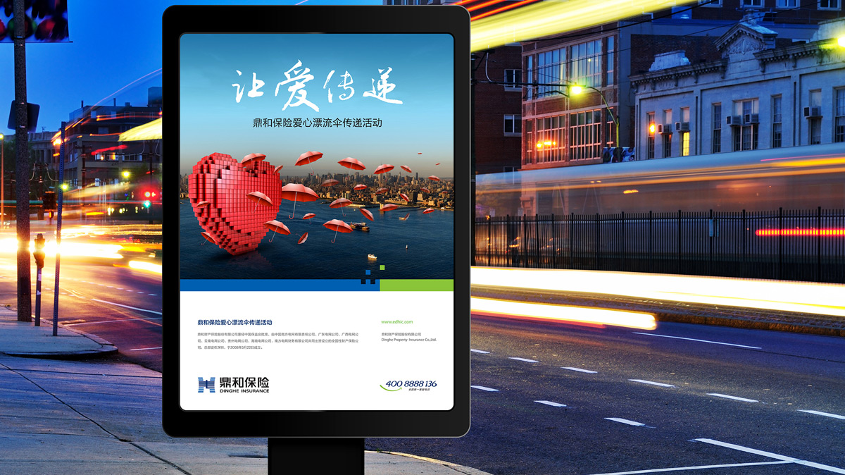 “感恩漂流.愛心傘傳遞活動”是由鼎和保險發起的一項社會公益愛心互助活動。我們希望通過這里的每一把雨傘帶著愛和感恩的正能量在城市里漂流。請你在感受溫暖的同時付出自己的愛心,在別人需要它的時候讓這份愛繼續傳遞。如果你愿意,請在傘面上對你最想感謝的人寫上兩句感恩的話,一句話就是一粒愛的種子,讓我們一起把感恩的種子播撒到城市的每一個角落,讓愛,去漂流吧!此處活動是尼高品牌繼鼎和VI形象設計后第一次形象落地執行的測試,效果受到各界高度認同...
