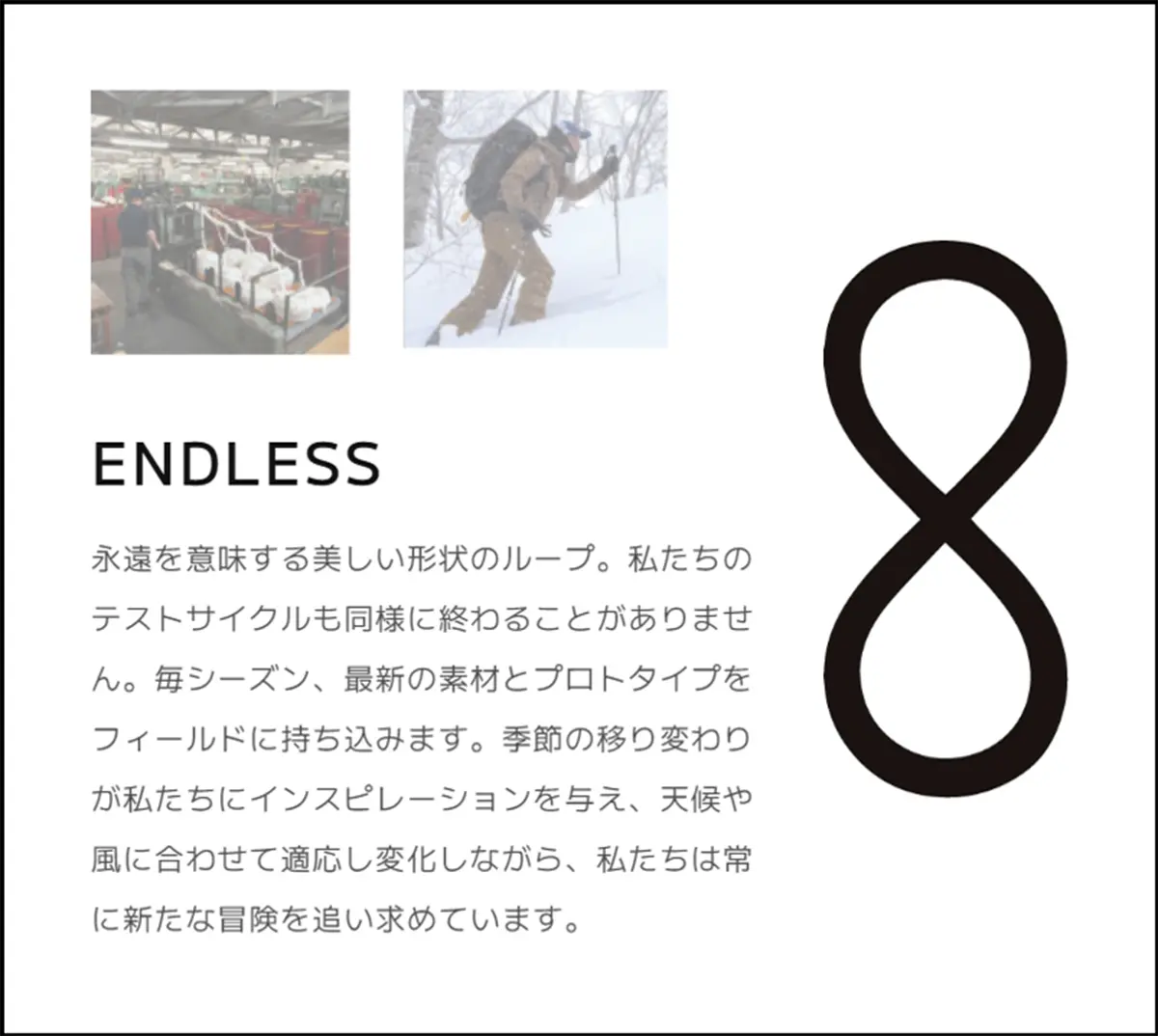 循環(huán)不息的形態(tài),代表對產(chǎn)品原型的持續(xù)改進。TETON BROS 每一年都會將新材料與設計帶入自然,接受季節(jié)與環(huán)境的考驗,持續(xù)拓展冒險的邊界。