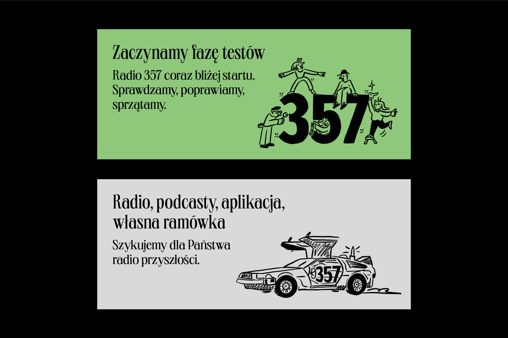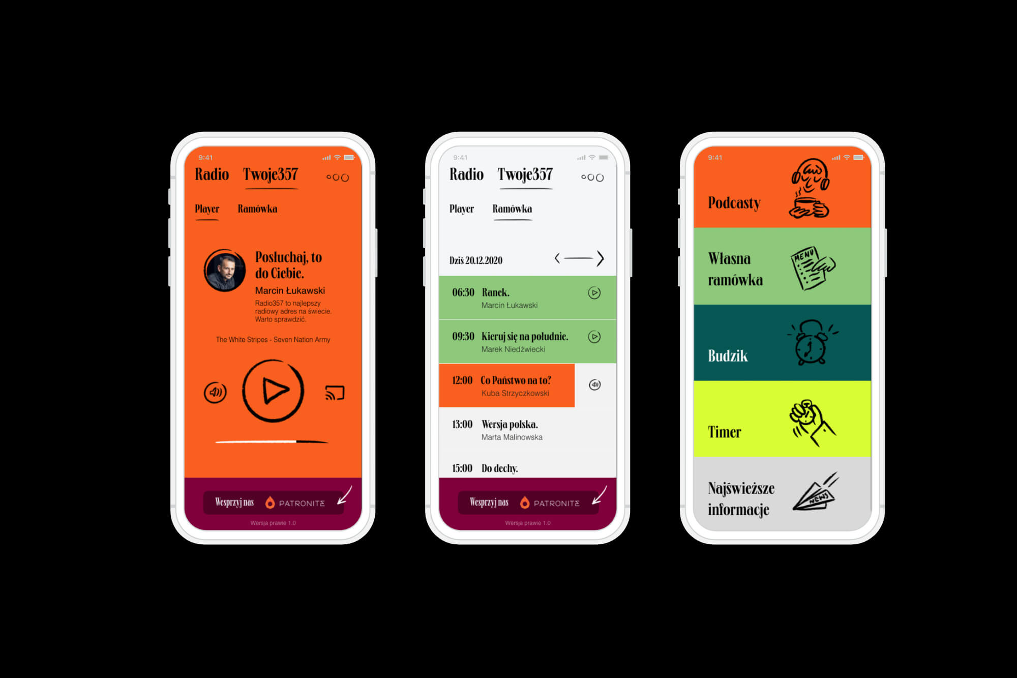 “許多平面設計師會與我們保持安全距離。但不是Hugmun Studio團隊。他們出現在適當的時候。他們有一個主意。多虧了他們,我們才有了顏色,選擇了字體并引入了繪圖慣例。我們的身份就像我們一樣-開朗,超脫,打破常規,不要與其他任何事物混淆。” –托馬斯·布熱津斯基(TomaszBrzeziński)/廣播電臺357