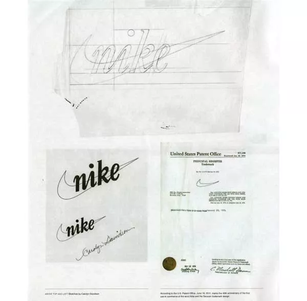 卡羅琳·戴維森(Carolyn Davidson)的耐克耐克素描和美國專利論文