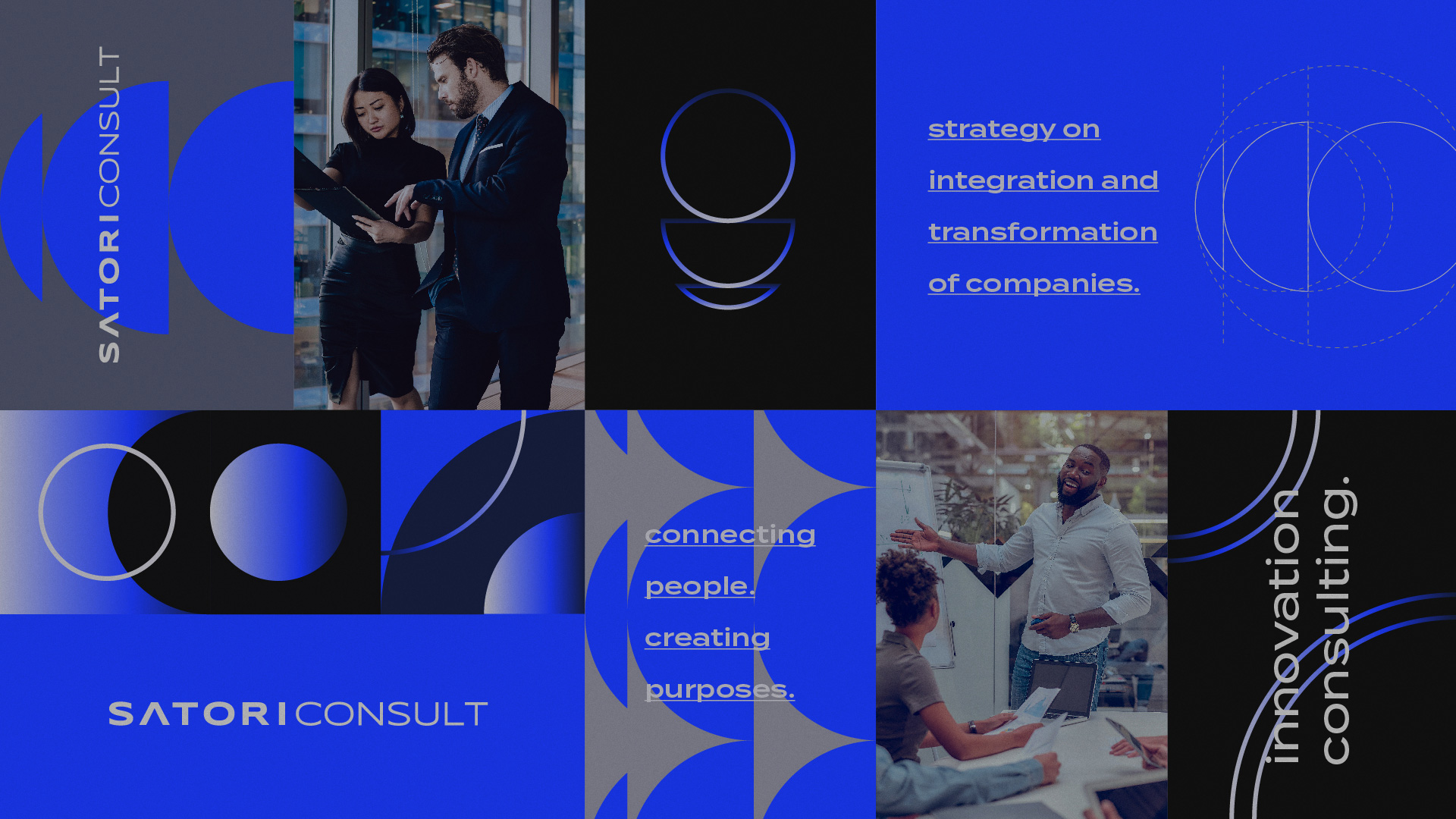 對于徽標(biāo),選擇使用幾何形狀``橢圓''來帶來連續(xù),無限循環(huán)的想法。選擇這種幾何形狀的原因在于將其應(yīng)用到公司的概念中:對于簡單和復(fù)雜的問題,解決方案始終力求簡化,簡化,改進,就像Satori Consult一樣。