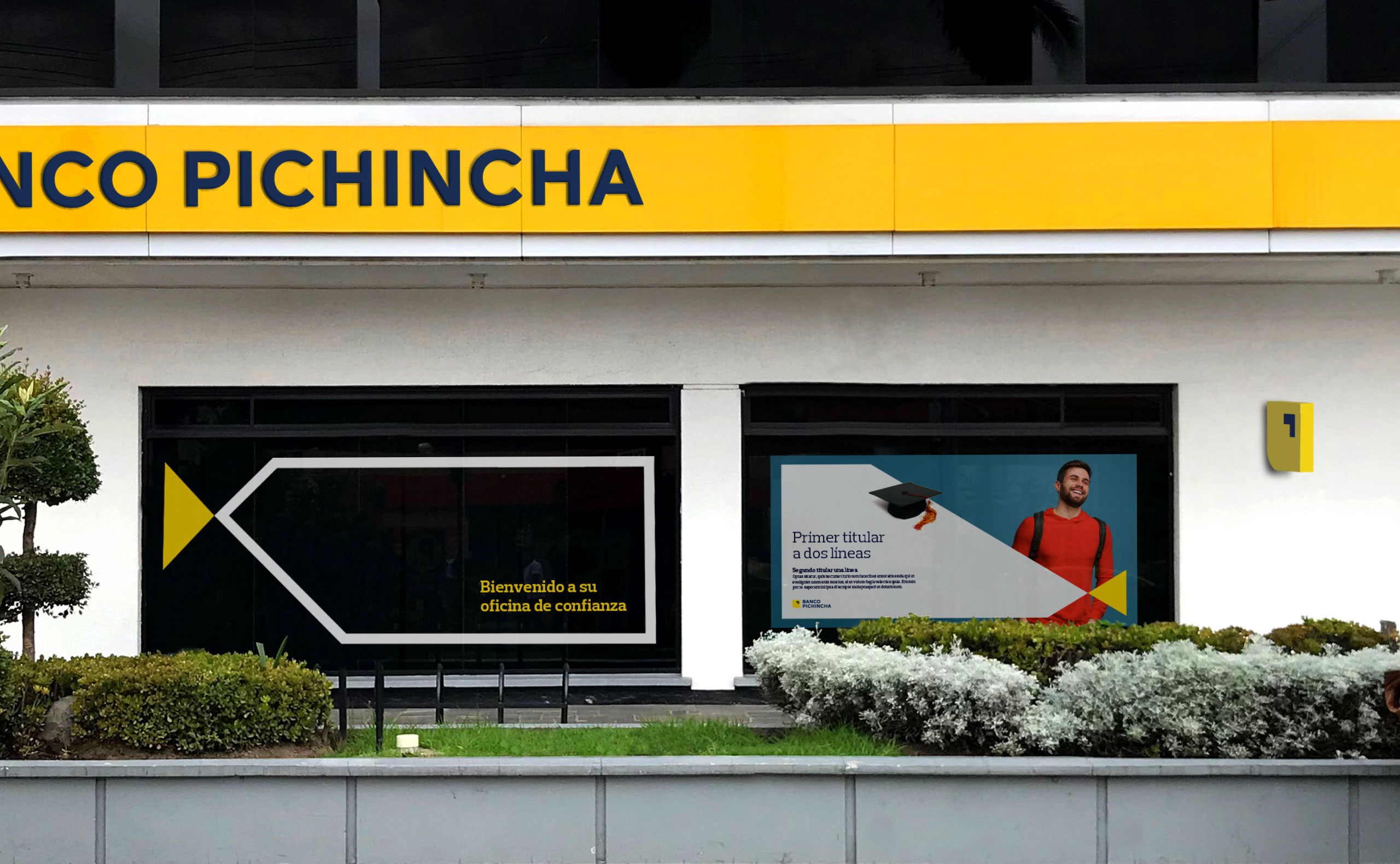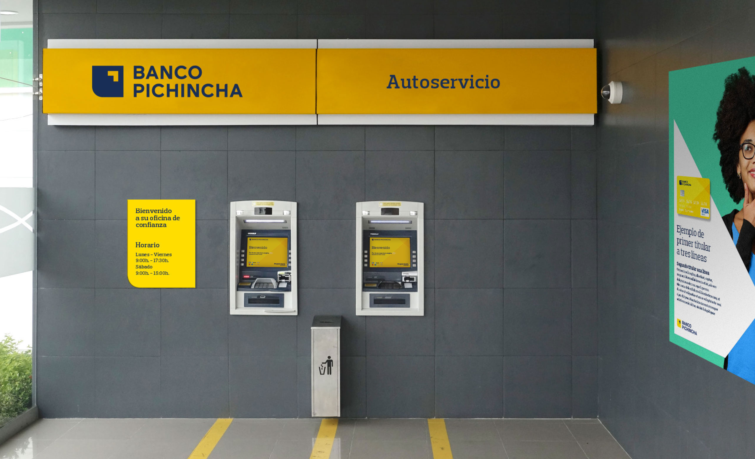 該項(xiàng)目的基本部分包括設(shè)計(jì)該品牌在其分支機(jī)構(gòu)和辦公室中最重要的應(yīng)用:立面標(biāo)牌,圖騰,橫幅,標(biāo)牌,信息豐富的乙烯基覆蓋物,窗戶標(biāo)牌,自動(dòng)提款機(jī),內(nèi)部標(biāo)牌等。