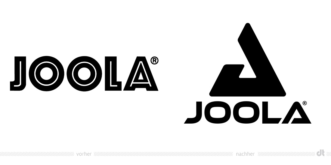 品牌外觀的變化是廣泛的。這絕不是進化的變化。很多業余愛好者和俱樂部會員很可能一開始都不認識“他們的” JOOLA品牌。我個人認為,可以將熟悉的字體的特征體現