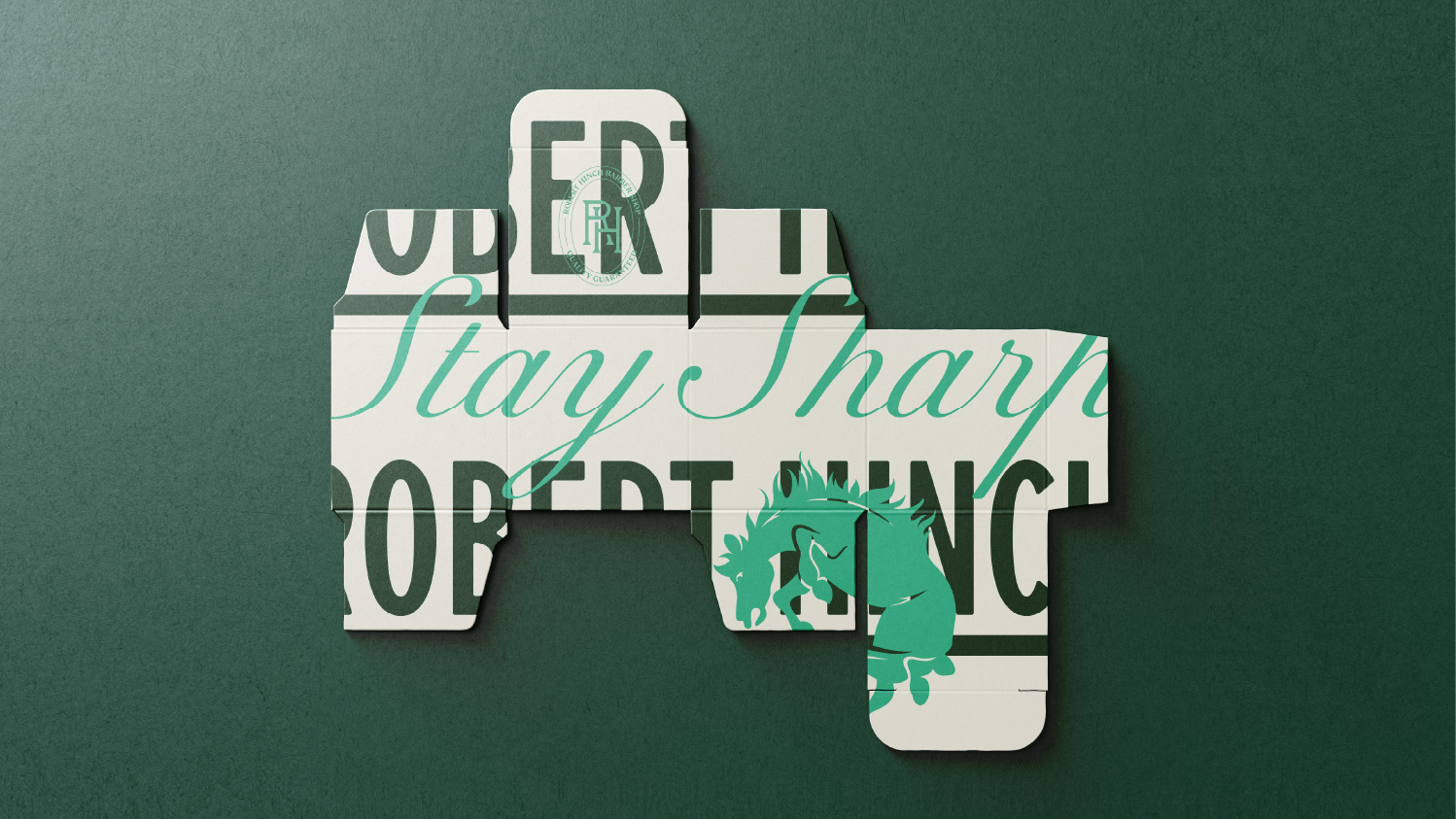 為了解決他們的問題,我們使用了經典、時尚而又現代的排版解決方案。我們想收緊前導,使每個字母相互接觸。我們認為這可能是顯示字體的標志性方式。我們還使用象征意義來展示它們的一些價值。例如,我們對馬進行了插圖,以展示人和棕櫚樹中的美麗精神,以反映理發師的心情,在那里非常舒適。還制作了拼貼畫作為他們的圖形工具之一,以創造更具活力和現代感的方法到男士化妝品。