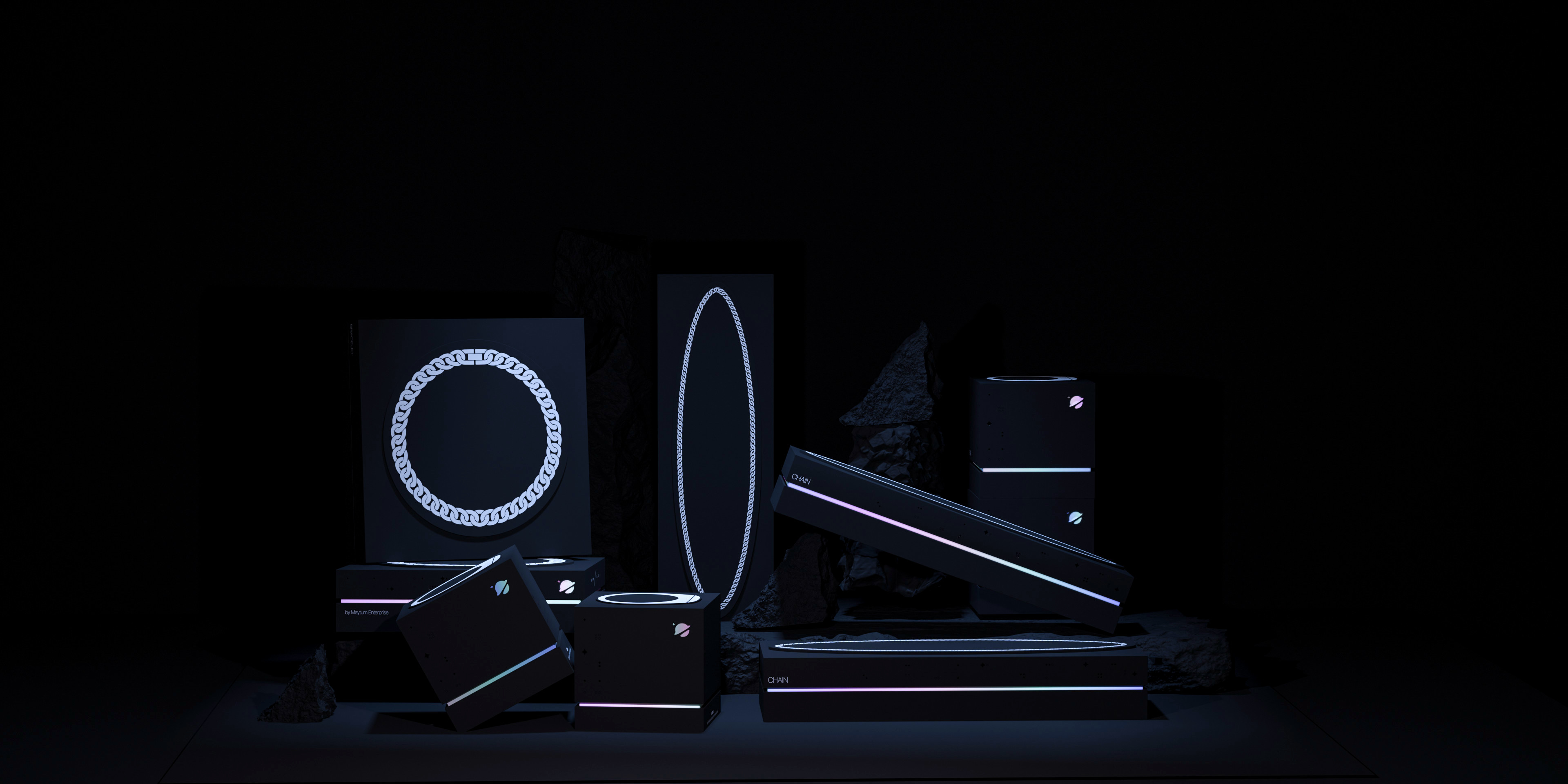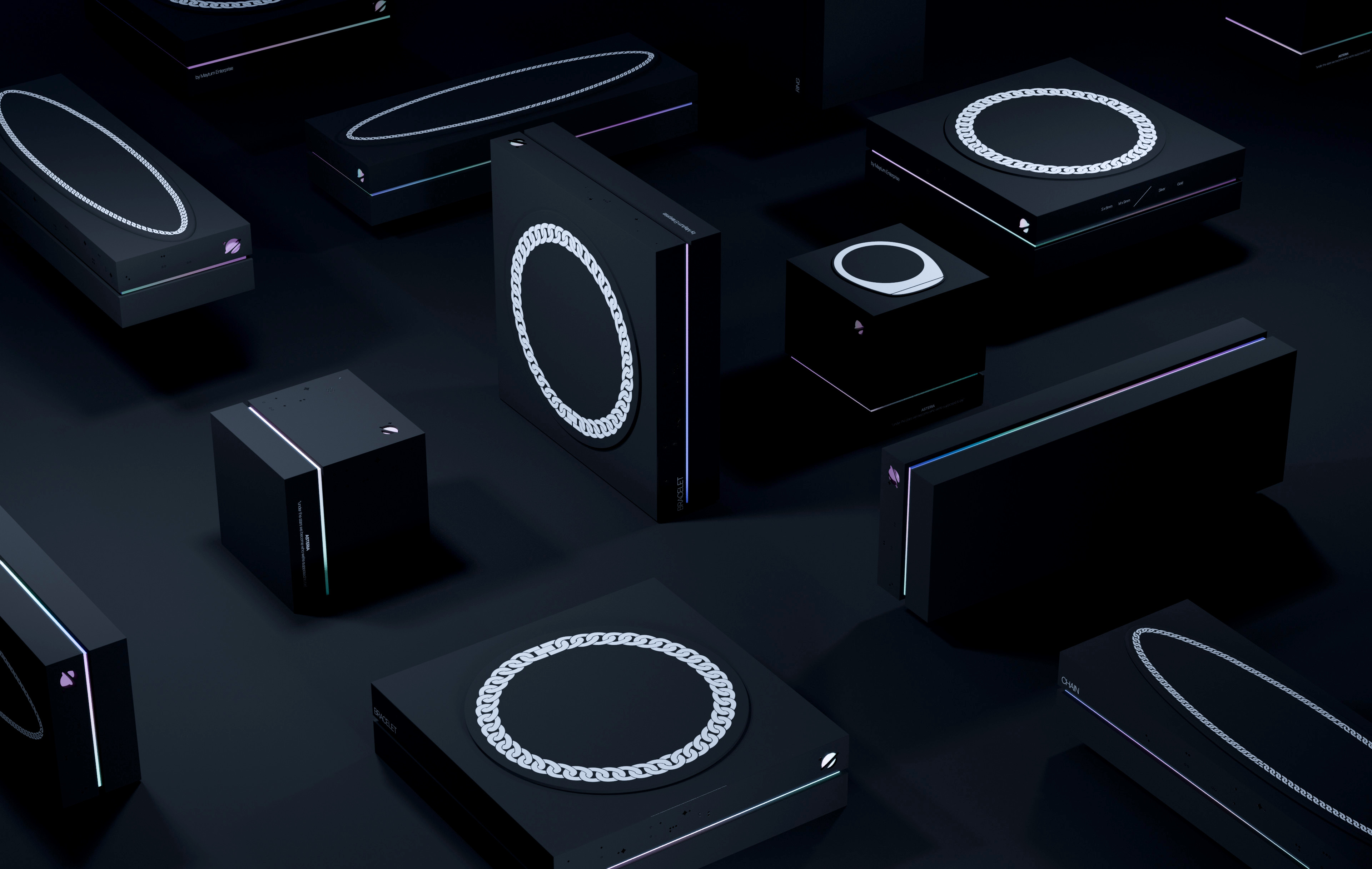 全套產品包括 3 個可裝小盒子:戒指、手鐲和鏈子,全部獻給 Maytum 的時尚達人。