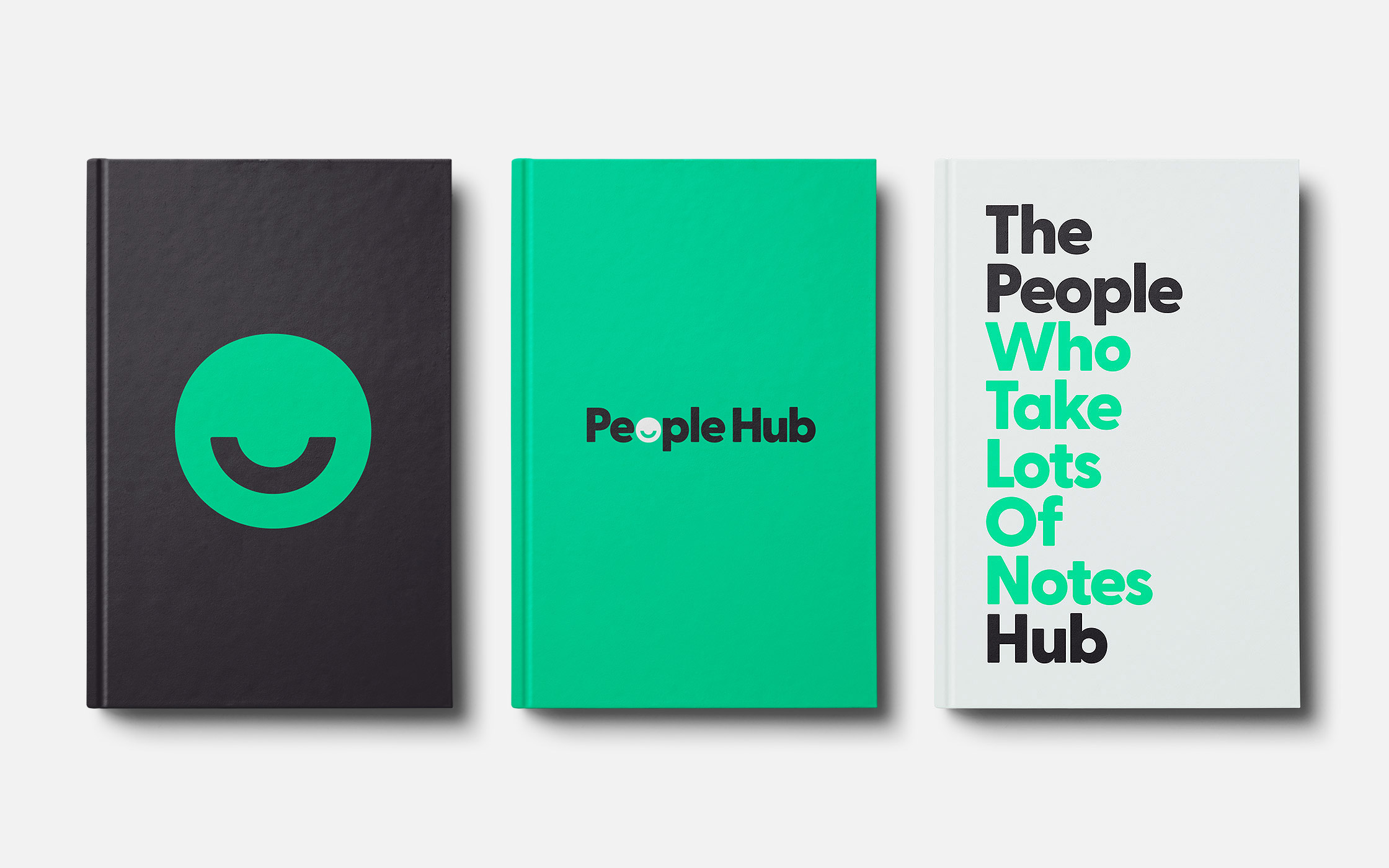 People Hub 的復雜產品因其品牌而變得更加復雜,它混合了顏色和明亮的圖形。 我們決定剝離一切,將品牌中心化為單一的新鮮綠色,這有助于鞏固產品并為公司創造大膽的新面貌。 引人注目的新圖形通過一系列插圖、圖標和視頻進行展示,有助于解釋服務和“中心”。 該品牌在 People Hub 的出色客戶(如 Red Bull、Haribo 和 Google)中掀起了一場風暴。 主標志圖標有一個簡單的微笑頭像,位于 People Hub 的“O”內。 這是該品牌的積極英雄,體現了快樂和敬業的員工隊伍。 然后,我們將微笑用作圖標上的圖形設備。