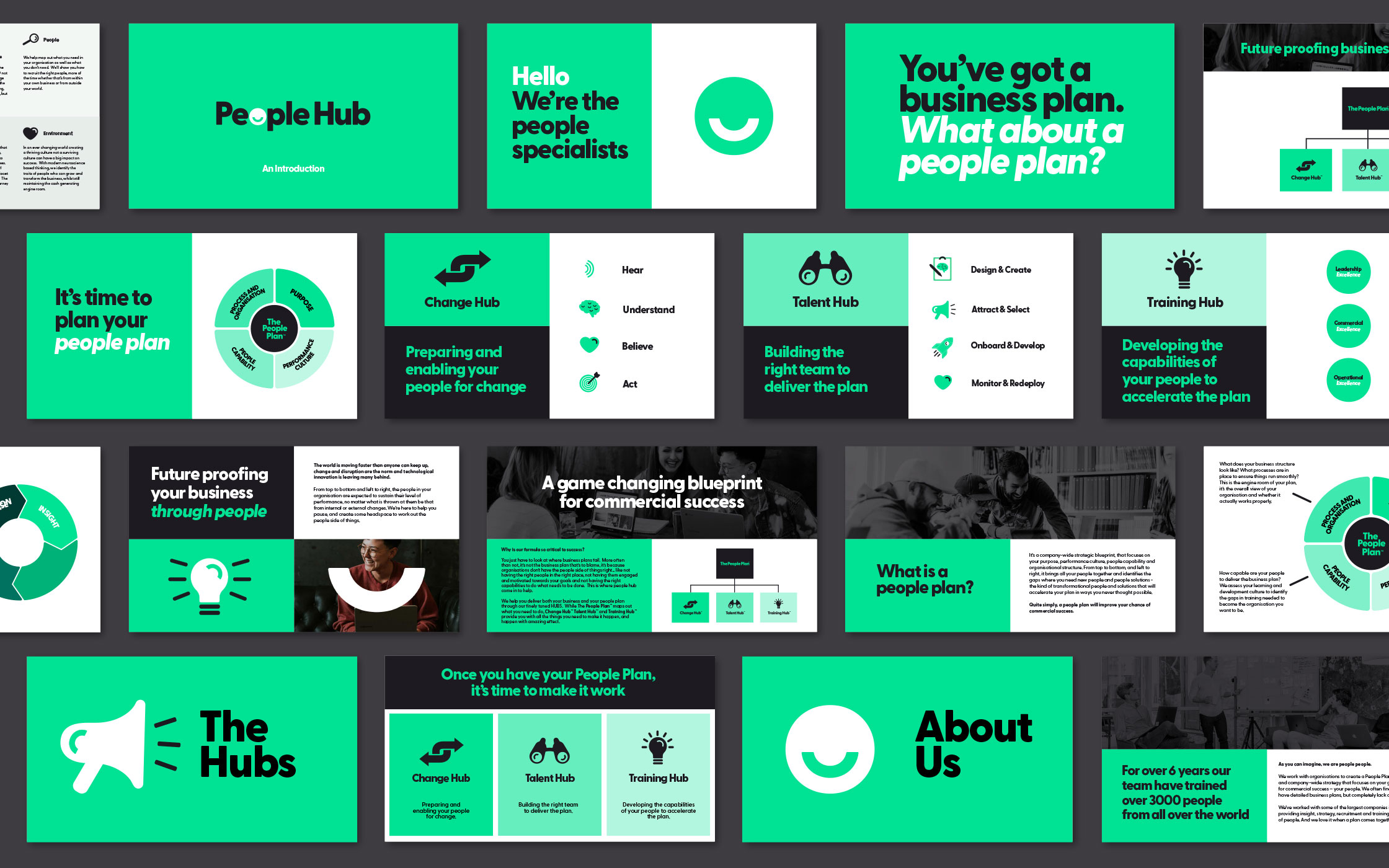 有趣的是,People Hub 是人事專家。 他們找到我們,要求我們徹底重新考慮他們的品牌設計、logo設計、商業模式和方法。 多年來,他們的產品發生了很大變化,甚至他們的內部團隊都在努力向不斷增長的客戶群闡明他們的服務。 我們舉辦了品牌研討會,并將他們所做的一切提煉成一個基于人員計劃的清晰的新商業模式,這是一個改變游戲規則的成功藍圖。 然后我們創建了一個大膽的新品牌和調色板,徹底改變了公司及其所有通信方式。