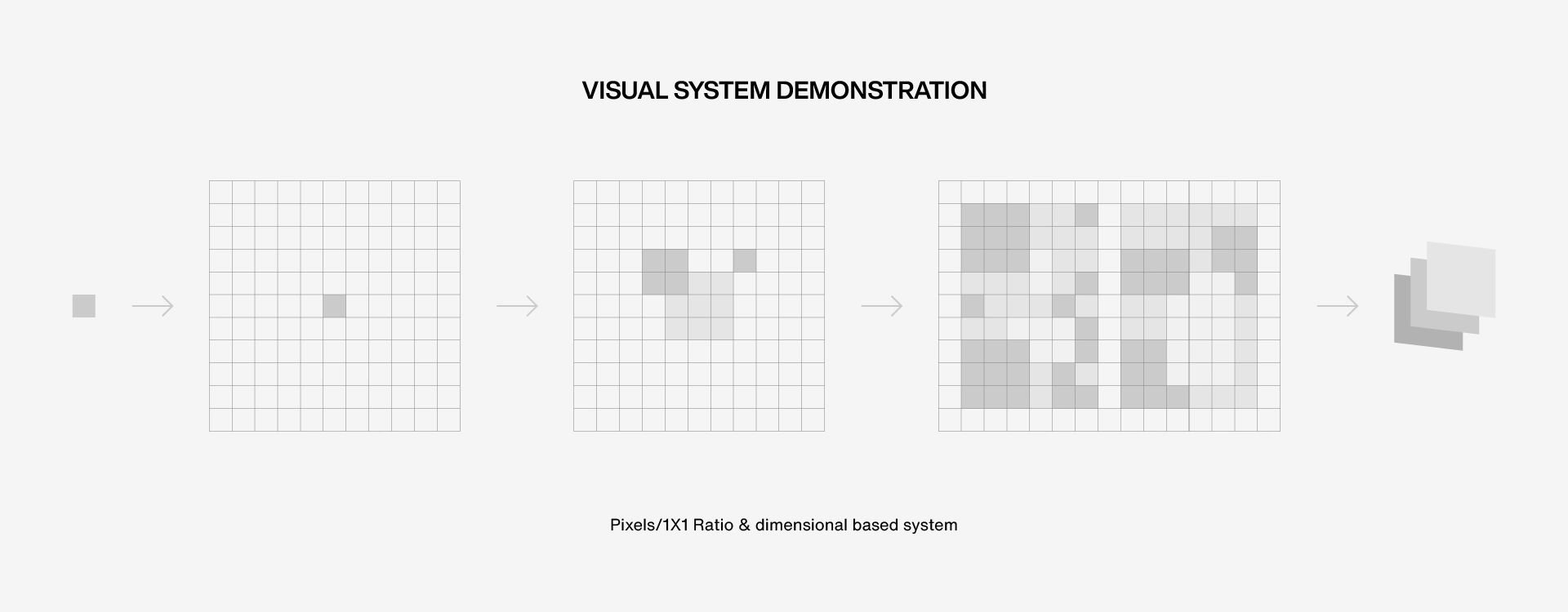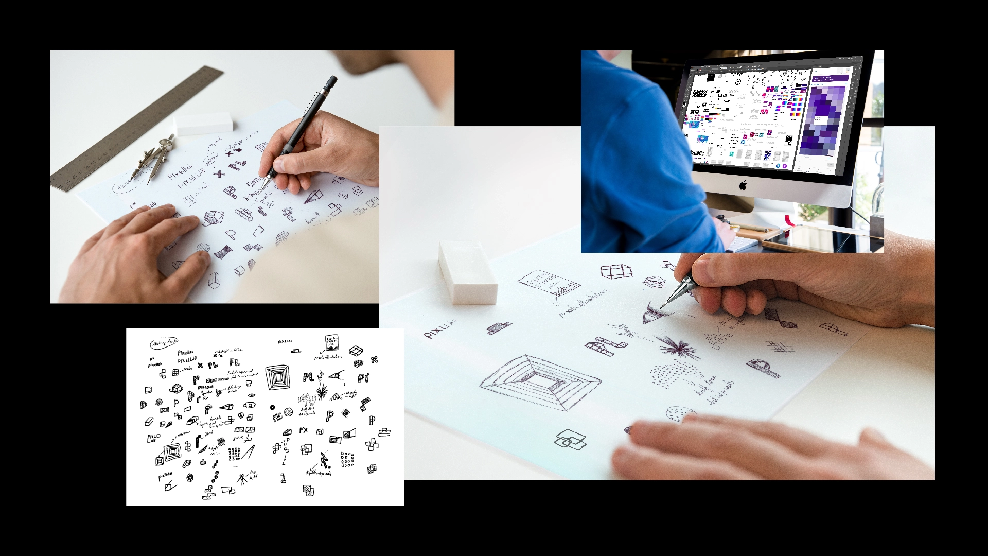 在發現和研究階段深入研究他們的業務后,我開始將速寫本上的點連接起來,集思廣益,探索不同的解決方案,從而形成像素啟發的、令人驚訝的、現代的品牌標志和視覺系統,而不是通常被過度使用的系統 像素方法。