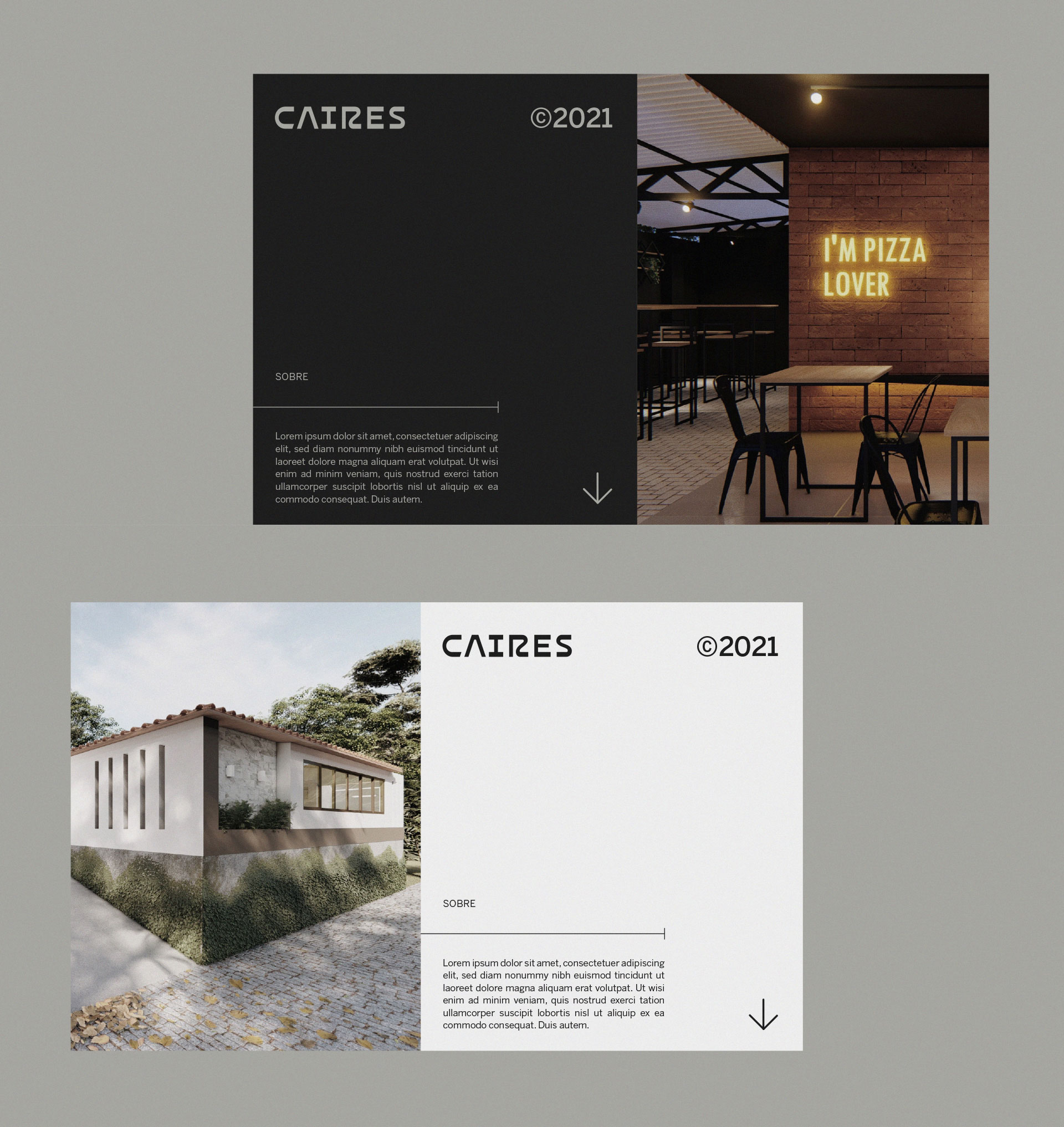 根據(jù)色彩心理學(xué)和 Caires 目前的定位,選擇構(gòu)成品牌的主要調(diào)色板搭配灰色、綠色和黑色等冷色調(diào)。 這些顏色傳達(dá)了一種隨意的感覺,然而,我們也有一些優(yōu)雅和舒適的印象。 還定義了一個輔助調(diào)色板,它作為視覺識別應(yīng)用的支持,主要是在數(shù)字媒體中。
