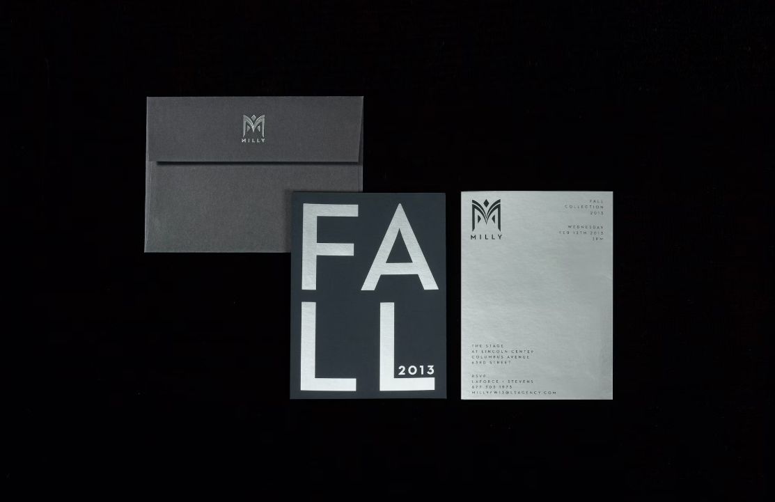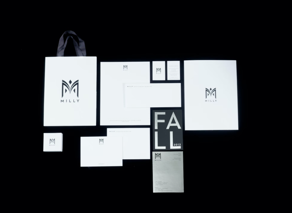 MILLY品牌成立于 2001 年,之前的 Milly 標志是復古的,幾乎夸張的女性化,出現在腳本字體和粉紅色和金色的調色板中。身份是有限的,不再體現系列的 DNA。
