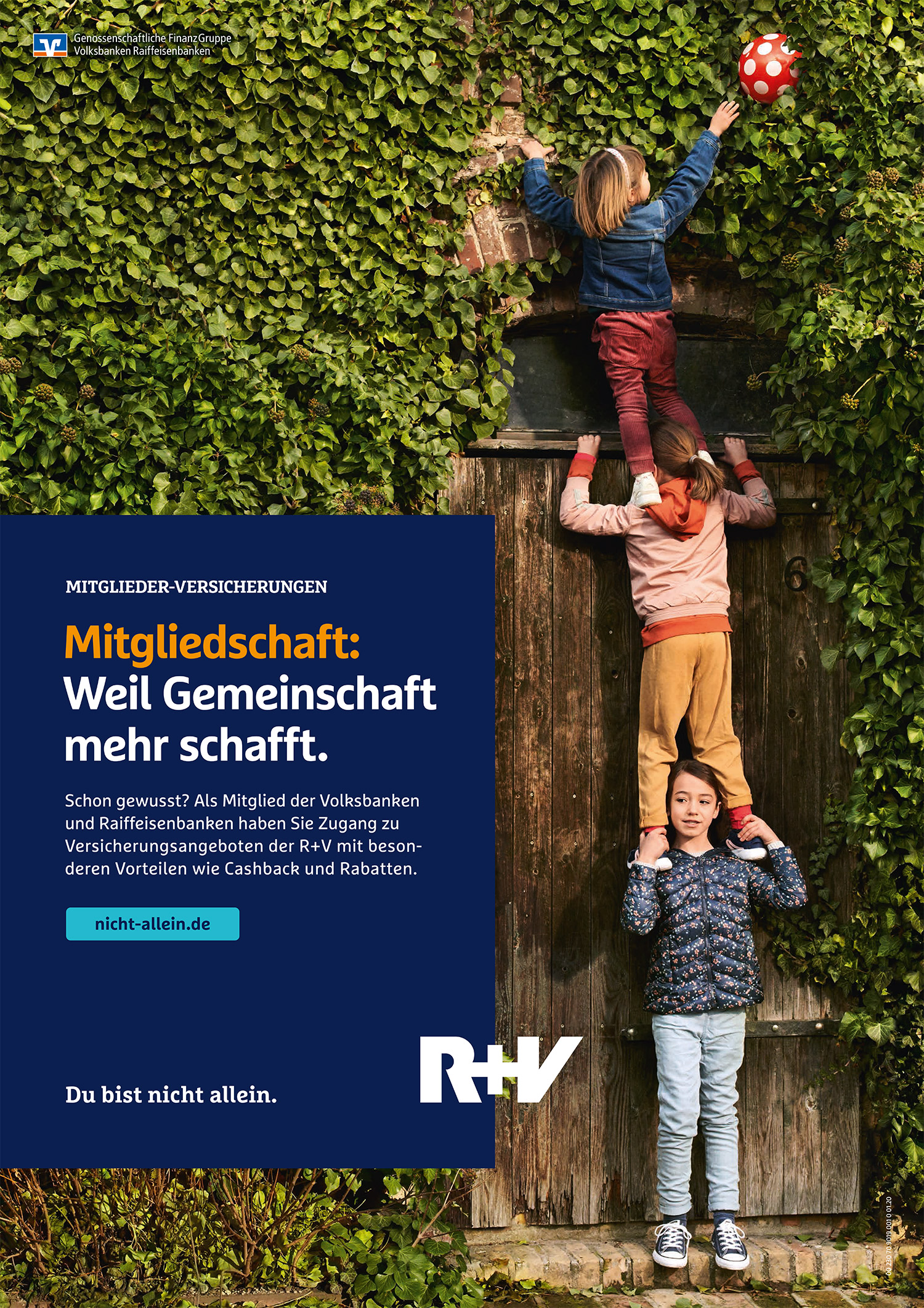 新的市場(chǎng)存在著眼于R + V的傳統(tǒng)態(tài)度,并支撐了自將近100年前成立以來就已經(jīng)存在的基本合作理念:“一個(gè)人不能獨(dú)自做,許多人可以創(chuàng)造。” 首席執(zhí)行官諾伯特·羅林格(Norbert Rollinger)說: 您的基本合作態(tài)度貫穿整個(gè)新市場(chǎng),就像一條紅線。在新的索賠“您并不孤單”中提到了保險(xiǎn)人的核心。它代表著社區(qū)精神,代表著彼此的存在,代表著彼此負(fù)責(zé)任的互動(dòng)。自2月8日起,R + V出現(xiàn)在新的印刷媒體,在線媒體以及新的電視廣告中。該設(shè)計(jì)是與MetaDesign機(jī)構(gòu)(杜塞爾多夫)合作開發(fā)的。總部位于慕尼黑的Serviceplan負(fù)責(zé)品牌宣傳活動(dòng)。