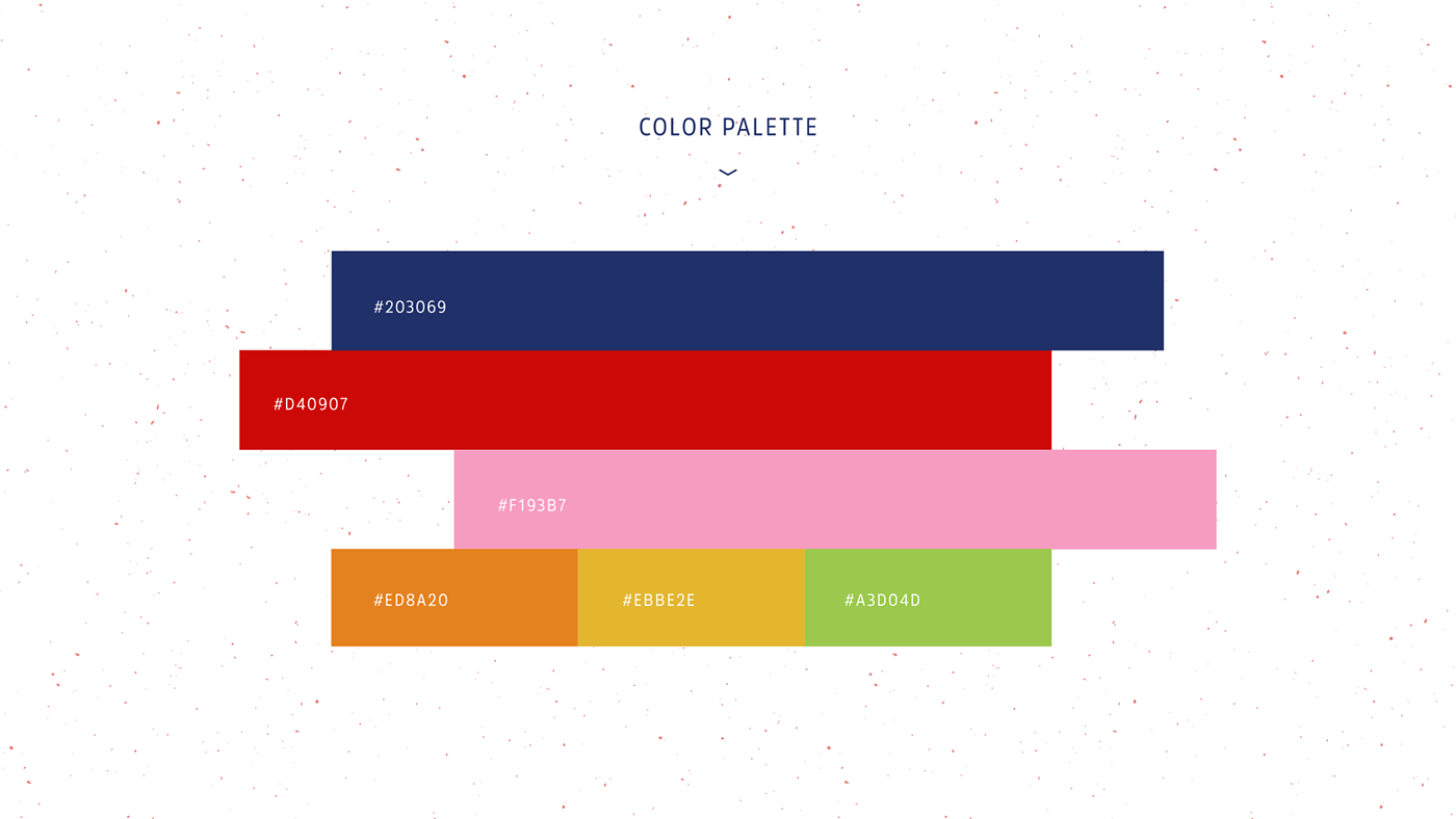 品牌形象設計中色彩采用豐富多彩的顏色,主色采用紅藍撞色使人印象深刻,標志設計采用紅色為主色,熱烈的紅色能夠使人食欲增強。