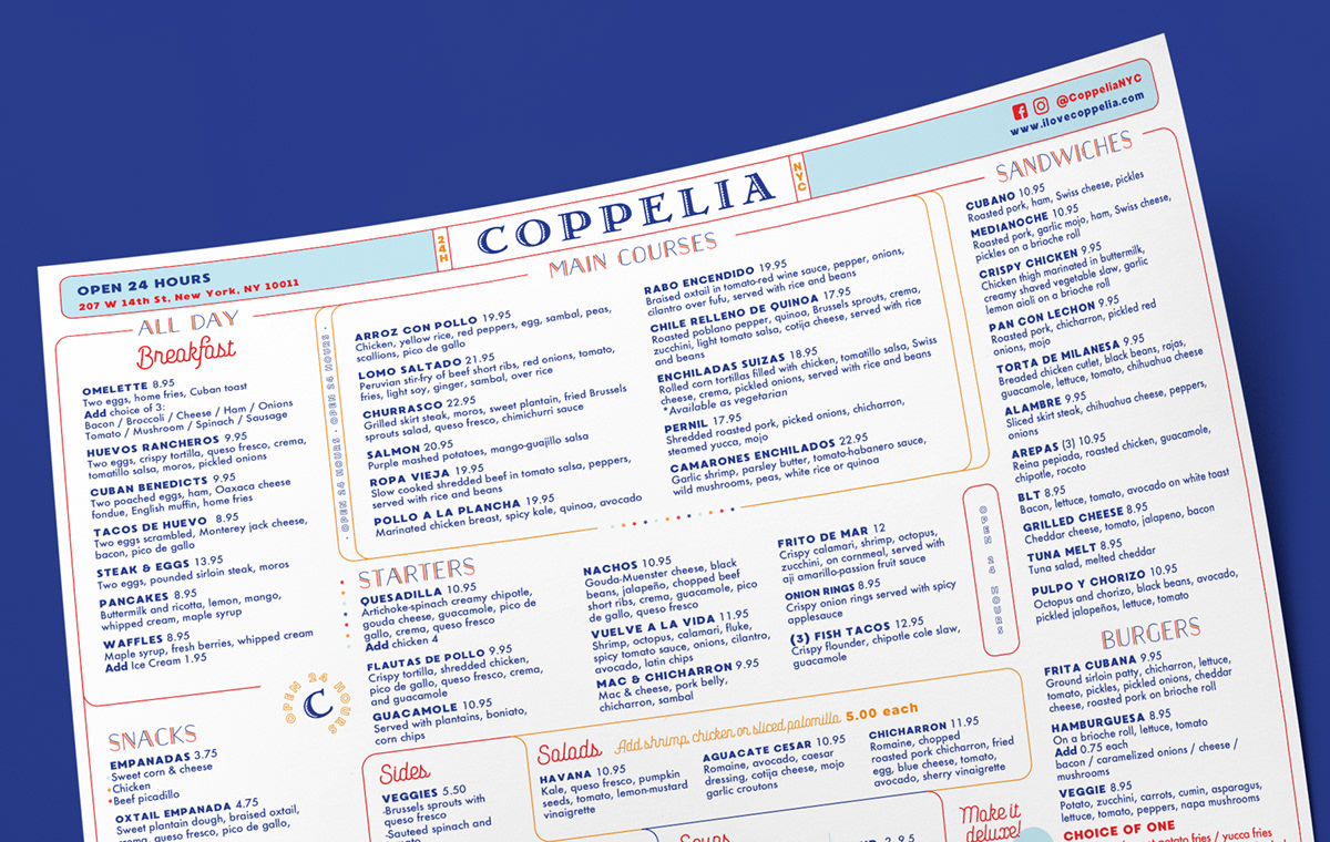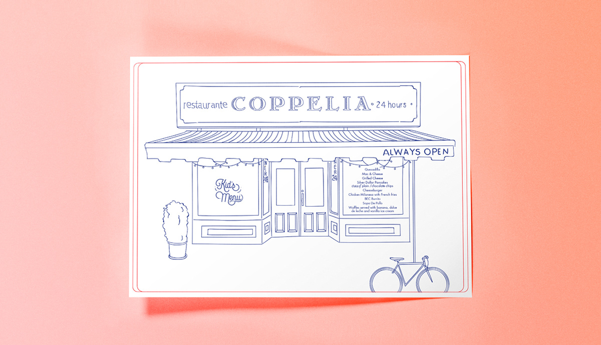 2018年,Coppelia決定更新他們的品牌VI設計,開發了品牌重塑項目,其中包括標志設計、菜單、霓虹燈標志、網站,以及一些細節,以改善餐廳的總體外觀。