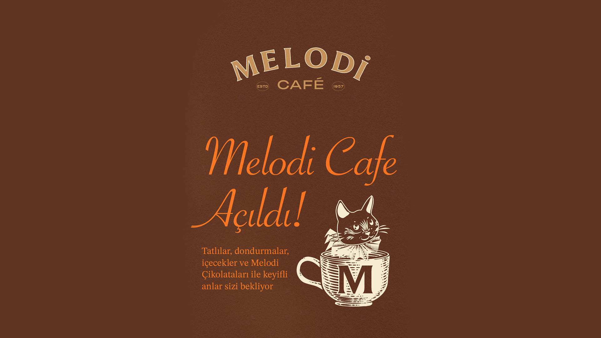 品牌標識的設計與其復古美學風格完美融合,致敬Melodi巧克力的悠久傳承。為了象征巧克力與咖啡之間的獨特紐帶,我們重新構思了Melodi Logo設計的貓咪形象,并將其與咖啡杯搭配,創造出一種既熟悉又充滿新鮮感的視覺形象。這一設計元素巧妙地連接了傳統與創新,既俏皮又優雅,完美地詮釋了這家咖啡館的精神。