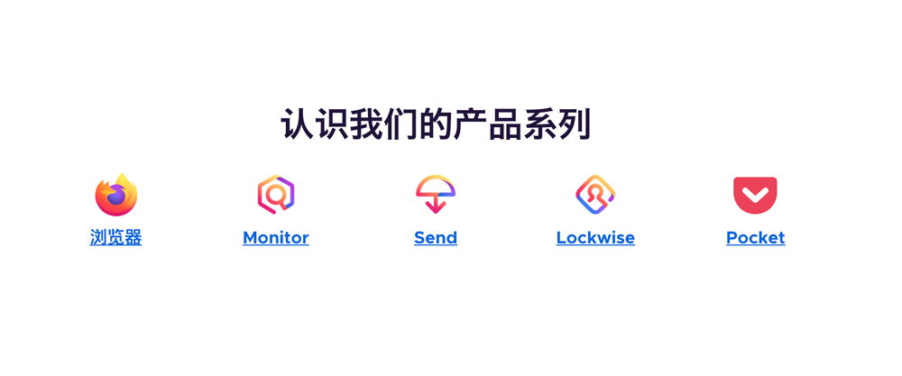 在Firefox品牌下,有Firefox Browser(火狐瀏覽器),F(xiàn)irefox Send、Firefox Monitor和Firefox Lockwise四個(gè)產(chǎn)品。每個(gè)產(chǎn)品都在設(shè)計(jì)了相應(yīng)的LOGO。