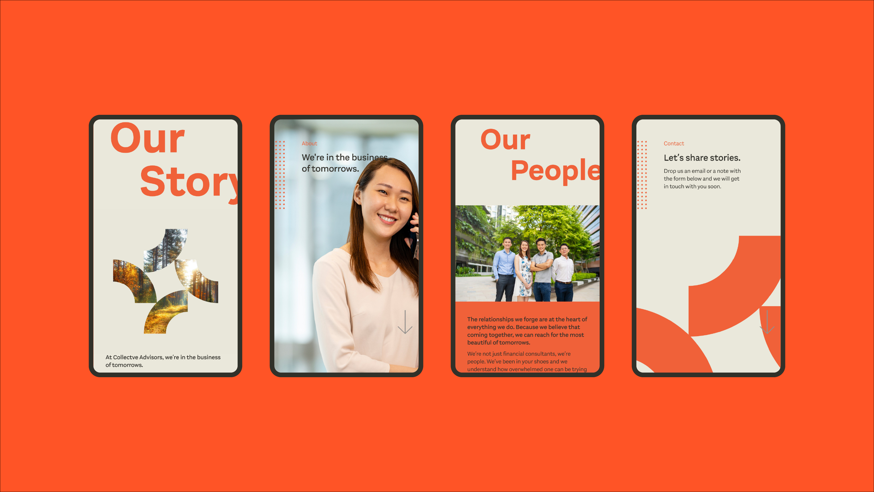 制作一個具有變革能量的風度翩翩的金融機構品牌VI設計。旨在將 Collectve Advisors 定位為不僅僅是另一組財務顧問。相反,他們是相信建立關系的善解人意的傾聽者。這是他們所做的一切的核心。通過走到一起,他們有能力真正改變人們的生活。