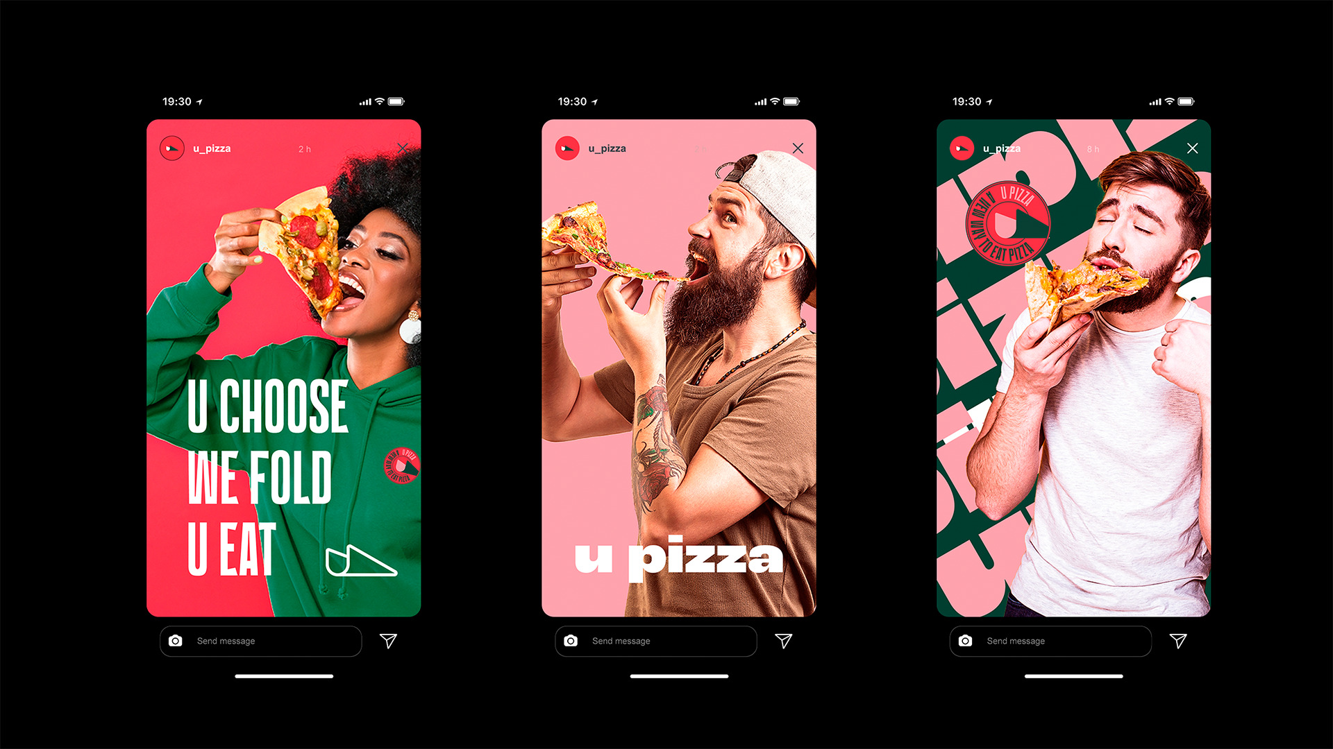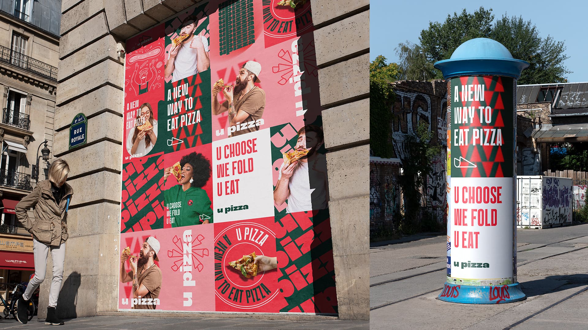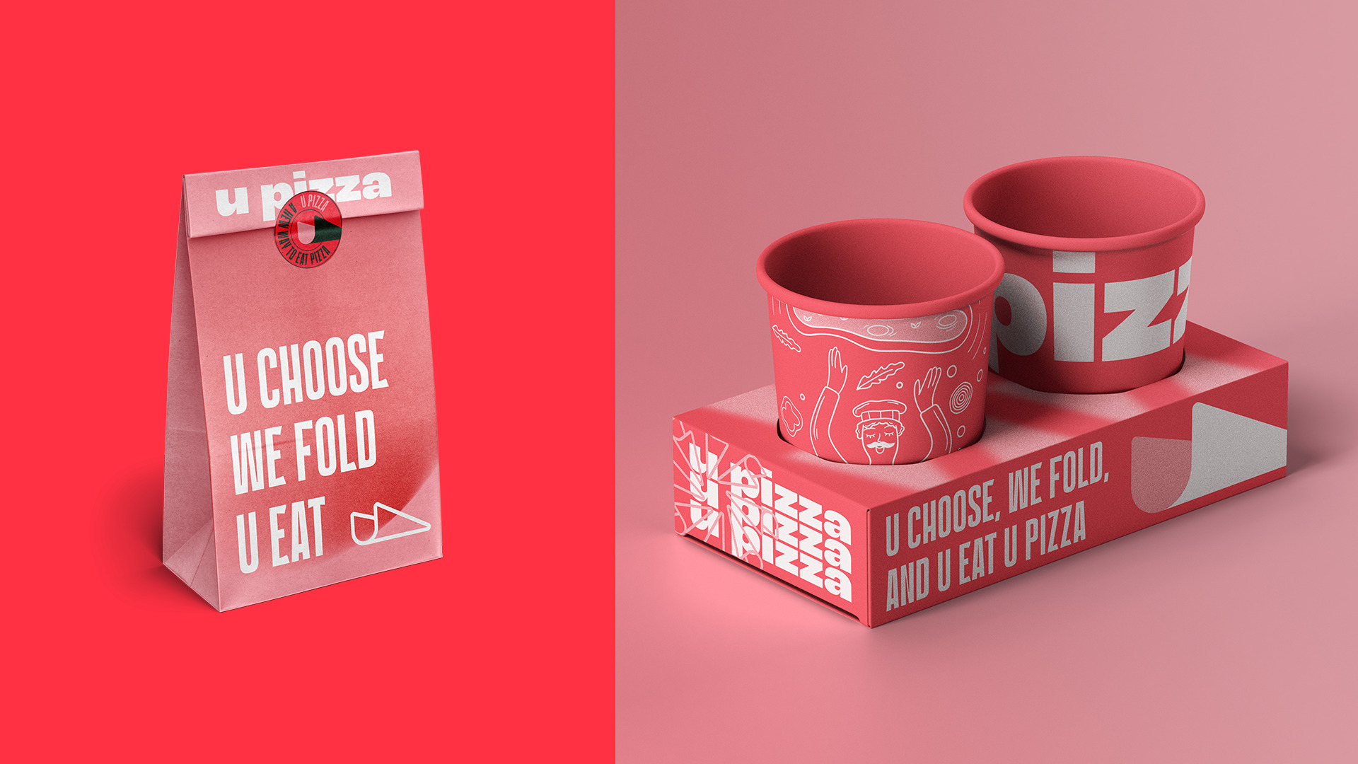 而正是這種命名的想法,賦予了身份概念的起點(diǎn)。在披薩店外賣品牌設(shè)計(jì)中,我們可以看到披薩片折疊起來(lái)形成字母“U”。我們致力于為品牌帶來(lái)力量和排他性的排版,并在溝通中使用另一種排版,從而為品牌帶來(lái)更多活力。我們創(chuàng)建了一個(gè)真實(shí)、強(qiáng)大的品牌,它帶來(lái)了巨大的可能性,旨在以令人驚訝的方式代表 U Pizza,吸引并與年輕觀眾建立聯(lián)系。