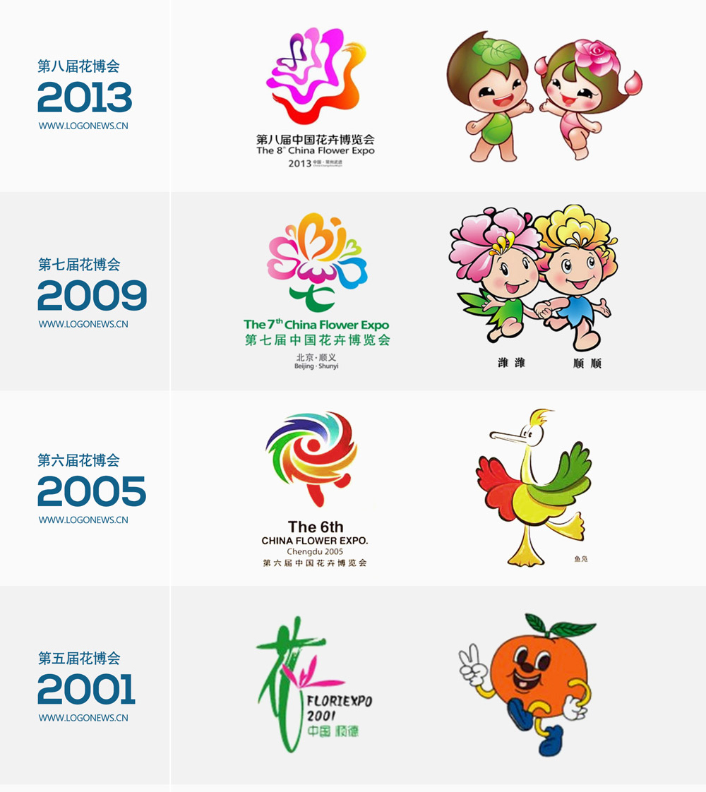 下面是第五屆中國花博會至第八屆的會徽LOGO設(shè)計和吉祥物設(shè)計