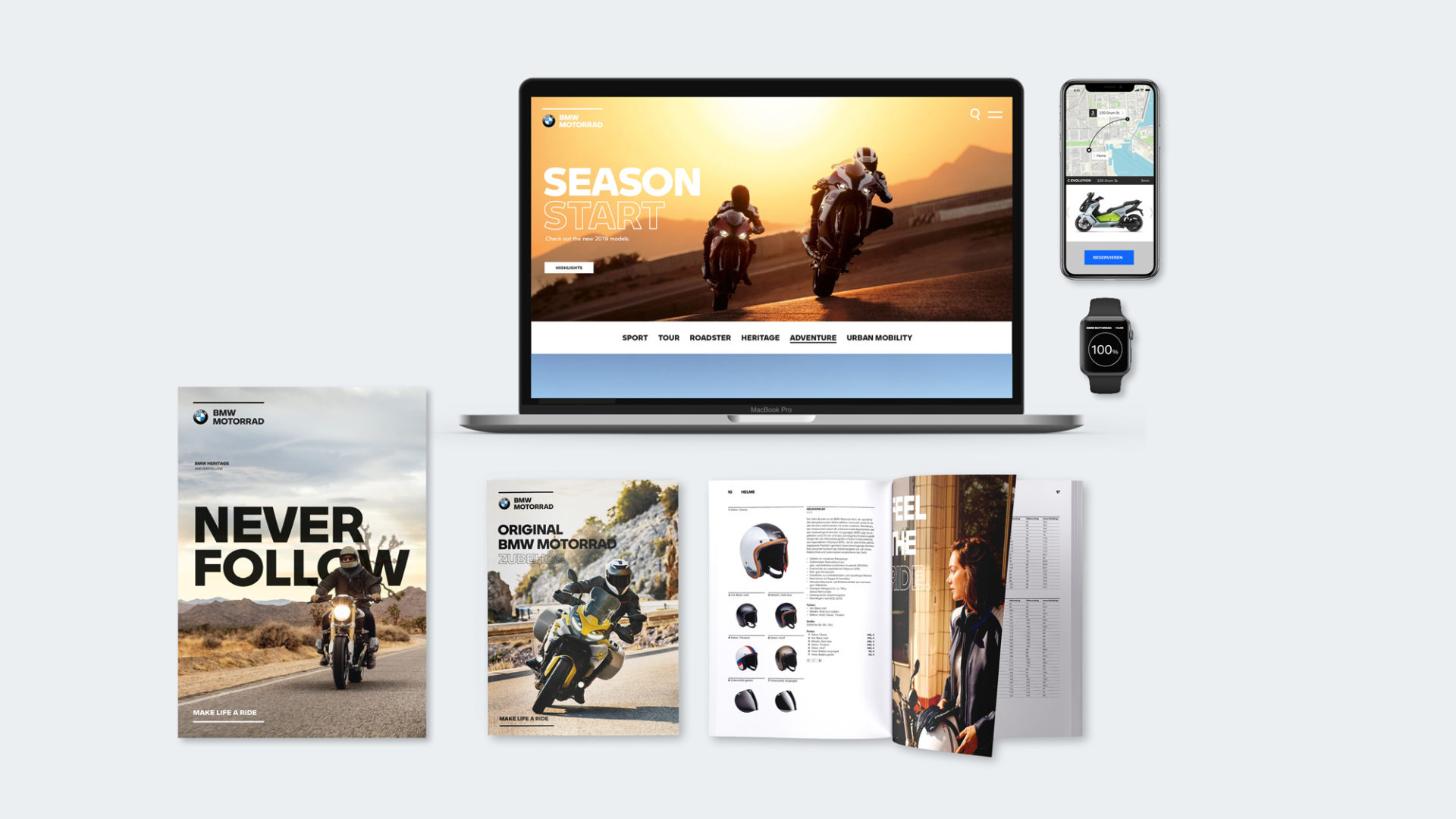 laiKMS團隊與BMW Motorrad一起對位置進行了微調:現在,該品牌代表著自決和美感。 寶馬機器的駕駛體驗不僅在情感和理性的兩極之間轉移,而且在新的品牌形象之間也是如此。 新的公司設計為粉絲的體驗世界增添了張力。 它的特點是純粹的喜悅和靈感。 這個主題將設計刻畫到最精細的細節,例如 由于字母的彎曲線和許多曲線。 獨立徽標和堅固的內部字體使該品牌充滿自信。