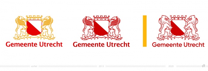 在2014年重新設(shè)計(jì)了城市徽標(biāo)后,演示文稿再次進(jìn)行了修改,以實(shí)現(xiàn)更清晰/更容易理解。黃色再次出現(xiàn)在徽標(biāo)中,并非直接位于紋章外觀之內(nèi),而是作為放置在獅子,盾牌和皇冠側(cè)面的所謂“金色邊框”。根據(jù)說(shuō)明,黃色條形代表王冠和獅子的金色,可以在城市的CD手冊(cè)(huisstijl.utrecht.nl)中閱讀。