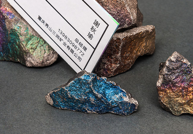 最大的挑戰(zhàn)之一是將設(shè)計中包含的顏色轉(zhuǎn)移到印刷品上,同時保持它們的活力。對于名片,我們正在尋找一種方法,將錳礦獨特的全息效果與名片應該代表的企業(yè)感覺結(jié)合起來。為了達到最好的效果,不得不層壓三層紙,然后在邊緣箔之前必須切割和手工打磨。它要求與信任的兩個打印機合作,并在某些階段把他們都逼瘋了。然而,最終的結(jié)果只是證明了堅持在設(shè)計過程中所做的決定是一個好的選擇。