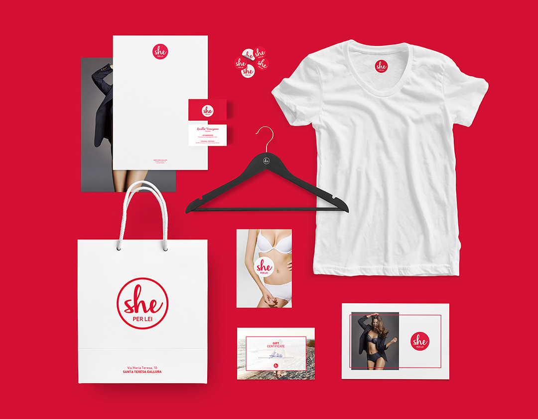 “she”是意大利-撒丁島,圣特雷莎加拉的一個內衣和泳衣品牌。基于四個關鍵品牌價值:質量、女性、亮度、優雅來設計品牌標識。