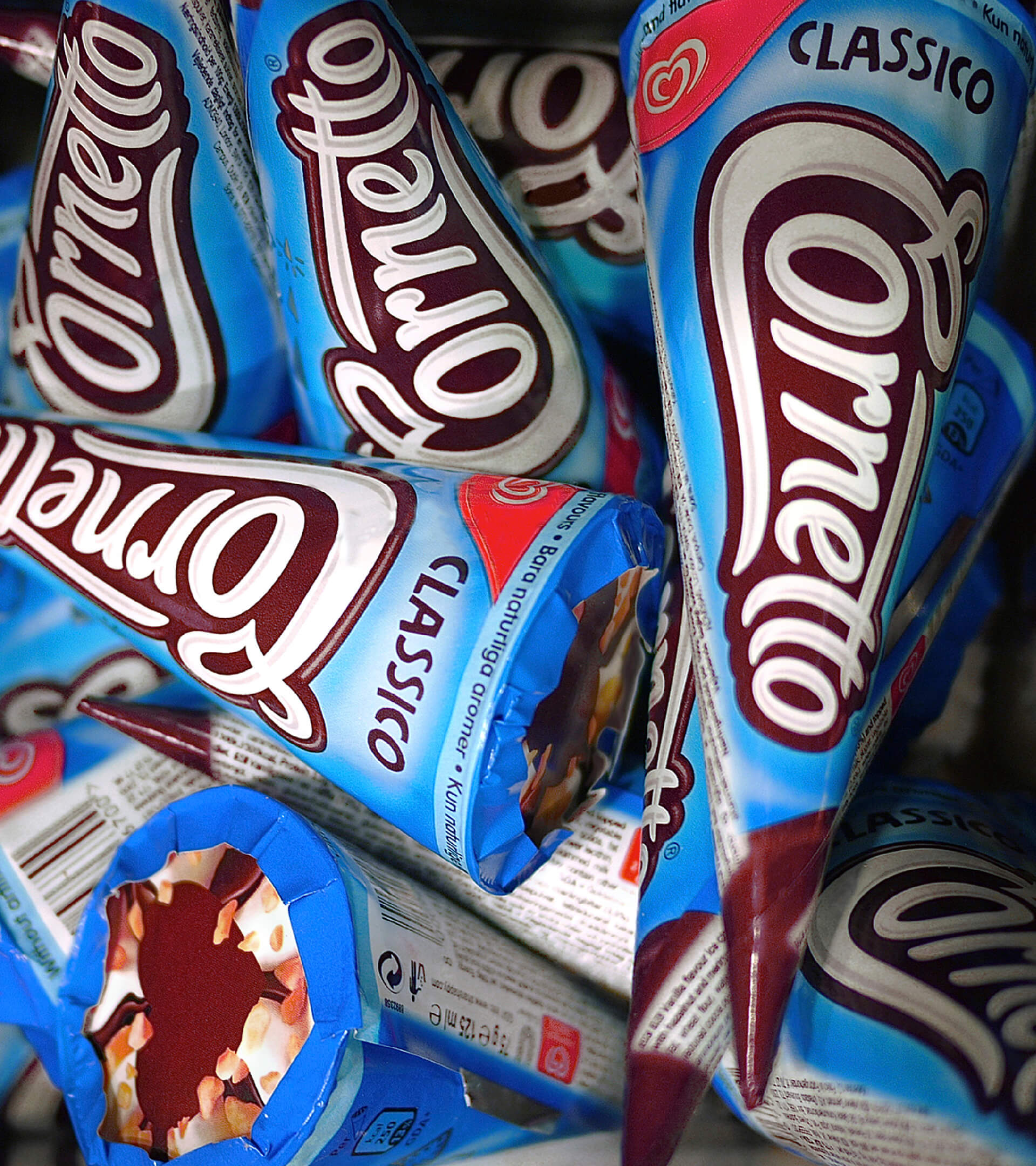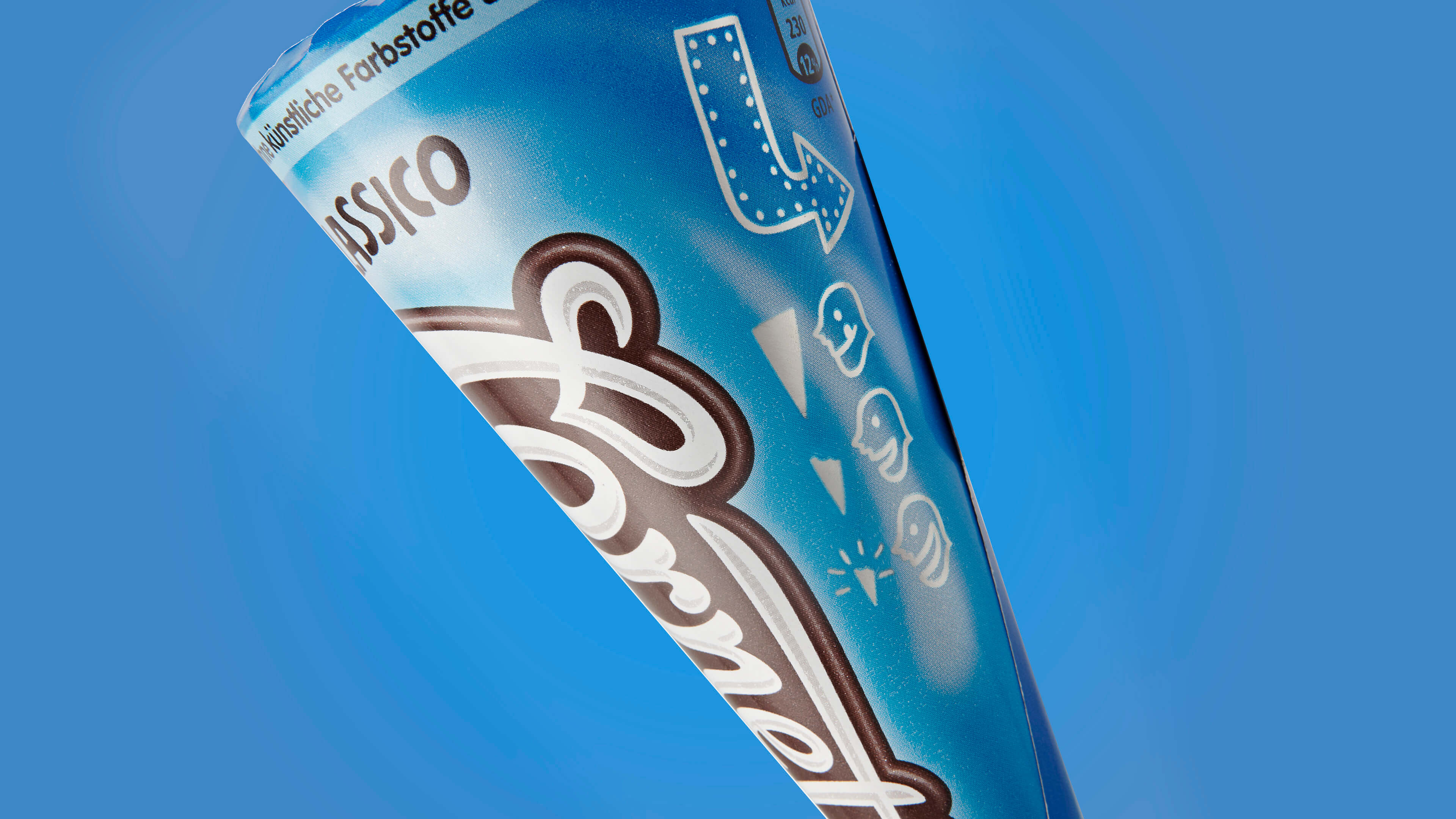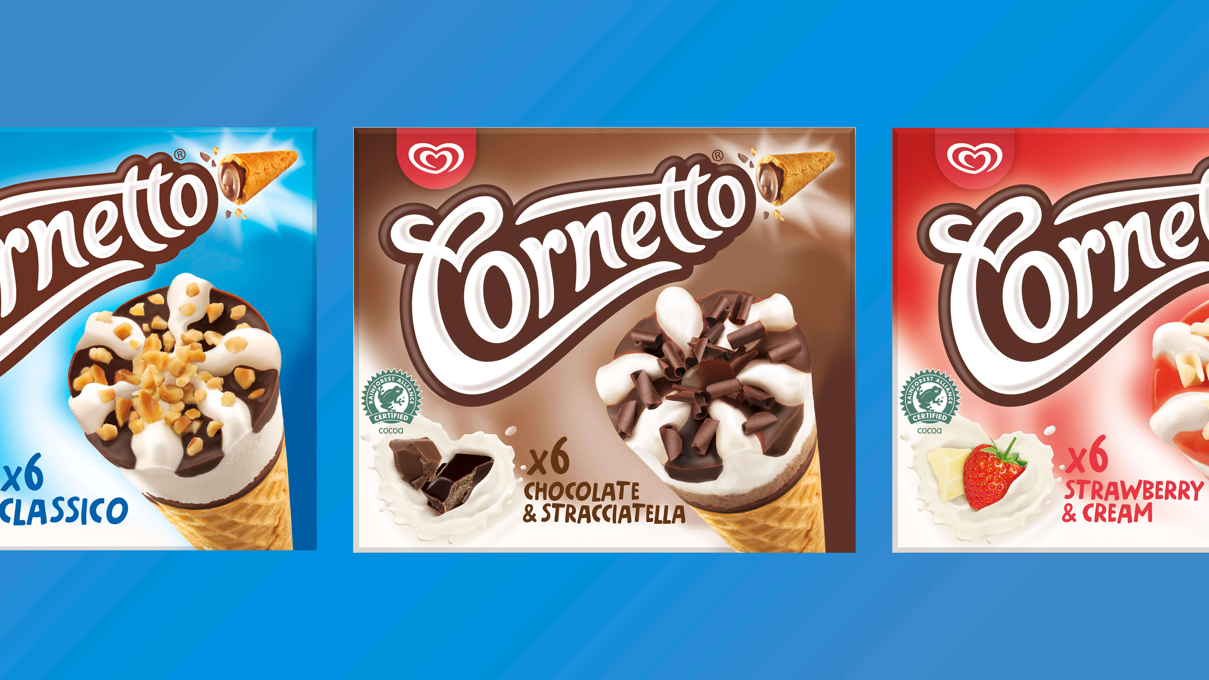 品牌標志的視覺流引導消費者沿著包裝走向科內托獨特的巧克力尖,突出了一個關鍵的產品優勢。擁有一個強大的包裝結構,使所有產品跨各種科內托系列更連貫地聯系在一起,從而提高品牌認知度。