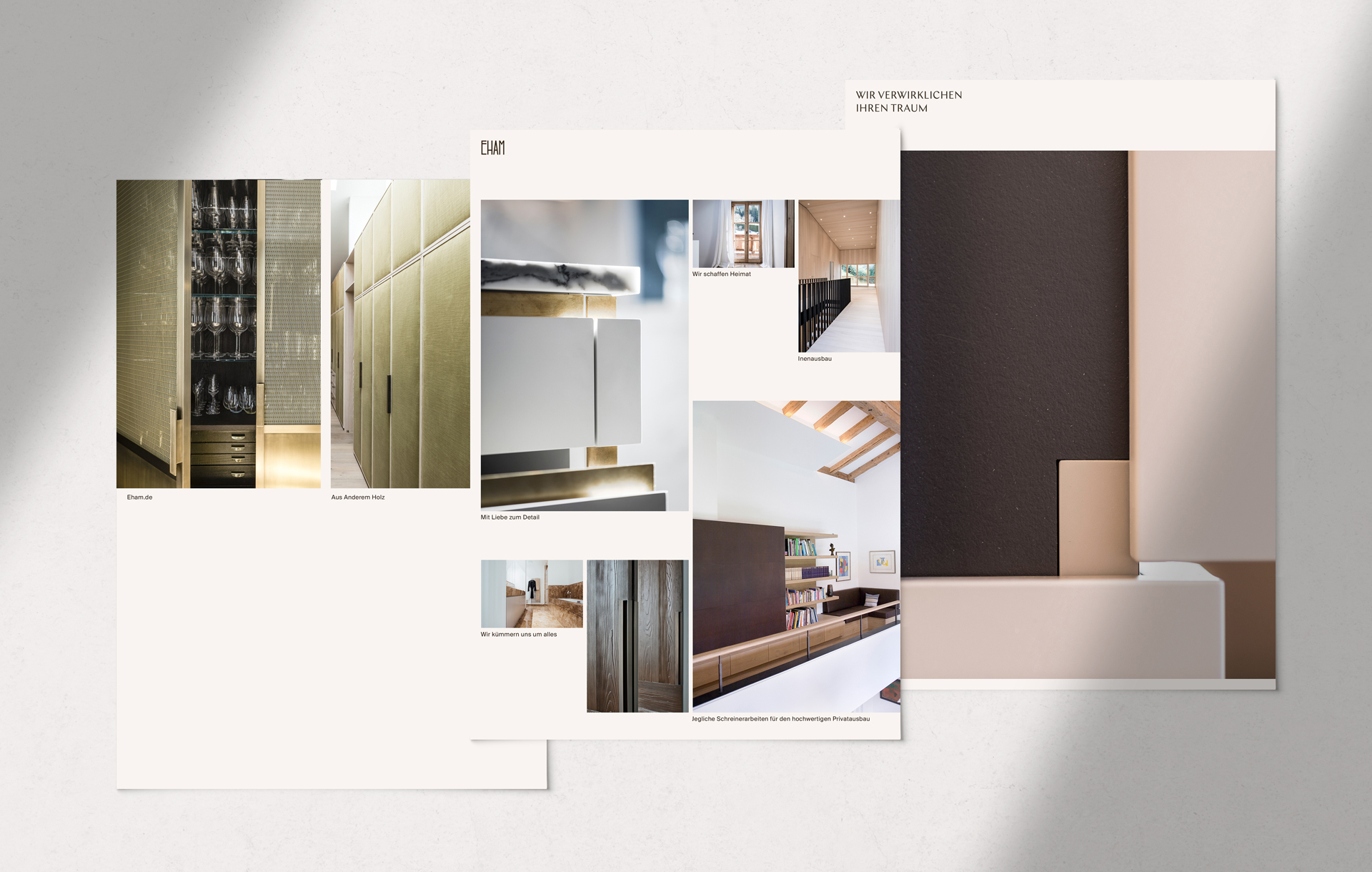為了增強(qiáng)感官感知和電子海姆在數(shù)字空間的工作質(zhì)量,我們把重點(diǎn)放在圖像上。為了吸引觀眾并把他們帶進(jìn)Eham的世界,我們特別設(shè)計(jì)了網(wǎng)站上的圖像和視頻,并結(jié)合了選定的版式。一個(gè)溫暖的調(diào)色板與木材,創(chuàng)造一個(gè)自然和誘人的感覺(jué)。新的身份表達(dá)了優(yōu)雅和輕盈與創(chuàng)意的平衡,同時(shí)參考了Eham在細(xì)節(jié)和質(zhì)量驅(qū)動(dòng)的工作中對(duì)材料的使用。