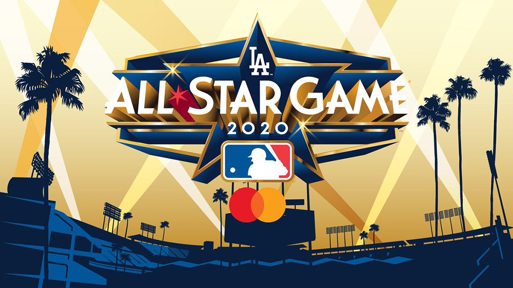 LOGO的正面的“ALL * STAR GAME”文字和周圍的元素一樣,進行了立體化的裝飾設計,2020的年份字樣置于下方。也許LOGO上最突出的是字標“ALL”和“STAR”之間的紅色小六角星,除了MLB和贊助商萬事達卡的LOGO外,它是整個視覺形象中唯一的紅色,這是對洛杉磯道奇隊制服的致敬。