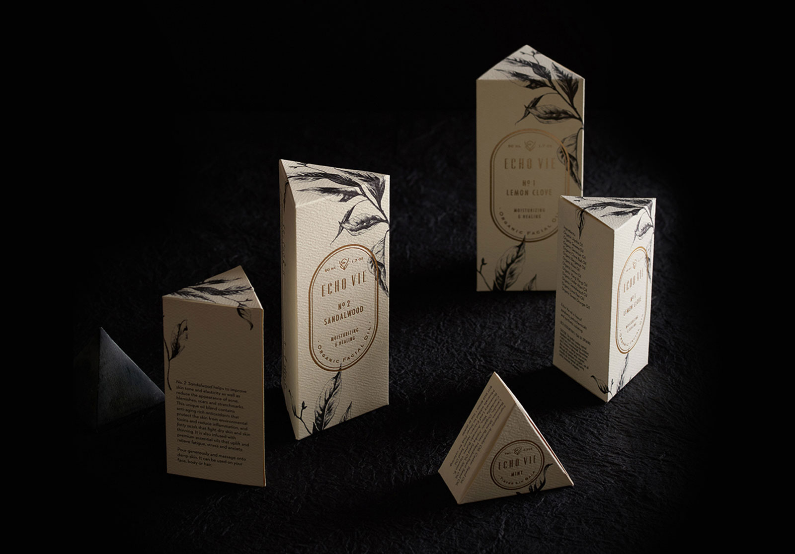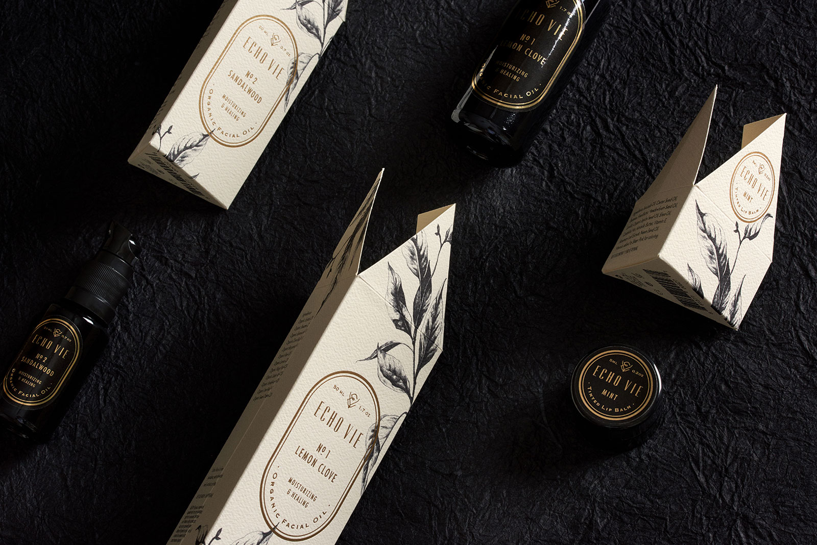 為了讓Echo Vie脫穎而出,用不同的方式來做事情——探索了彩色和紋理紙、獨特的盒子形狀和有機插圖,給人一種高級、手工、溫暖和感官的體驗。
