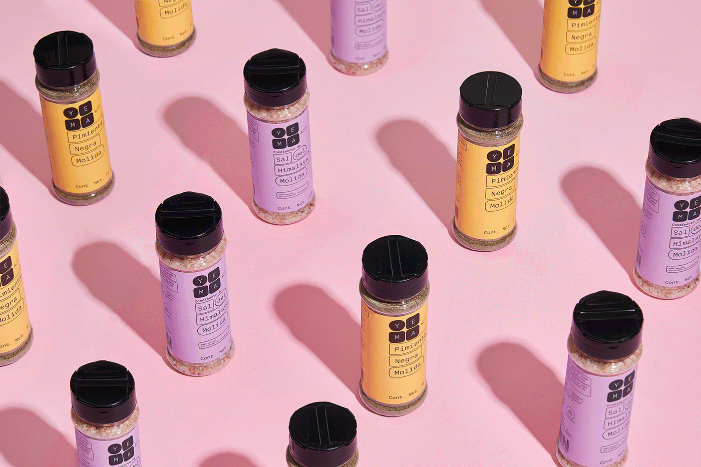 各種各樣的包裝通過顏色編碼的氣泡系統統一起來,既產生一致的視覺語言,又產生各種各樣的設計,因為氣泡適應不同的容器和標簽,有時占據更多的空間,有時占據更少的空間,并且通過在標識中混合使用黑/白,同時每個類別添加自己的顏色。