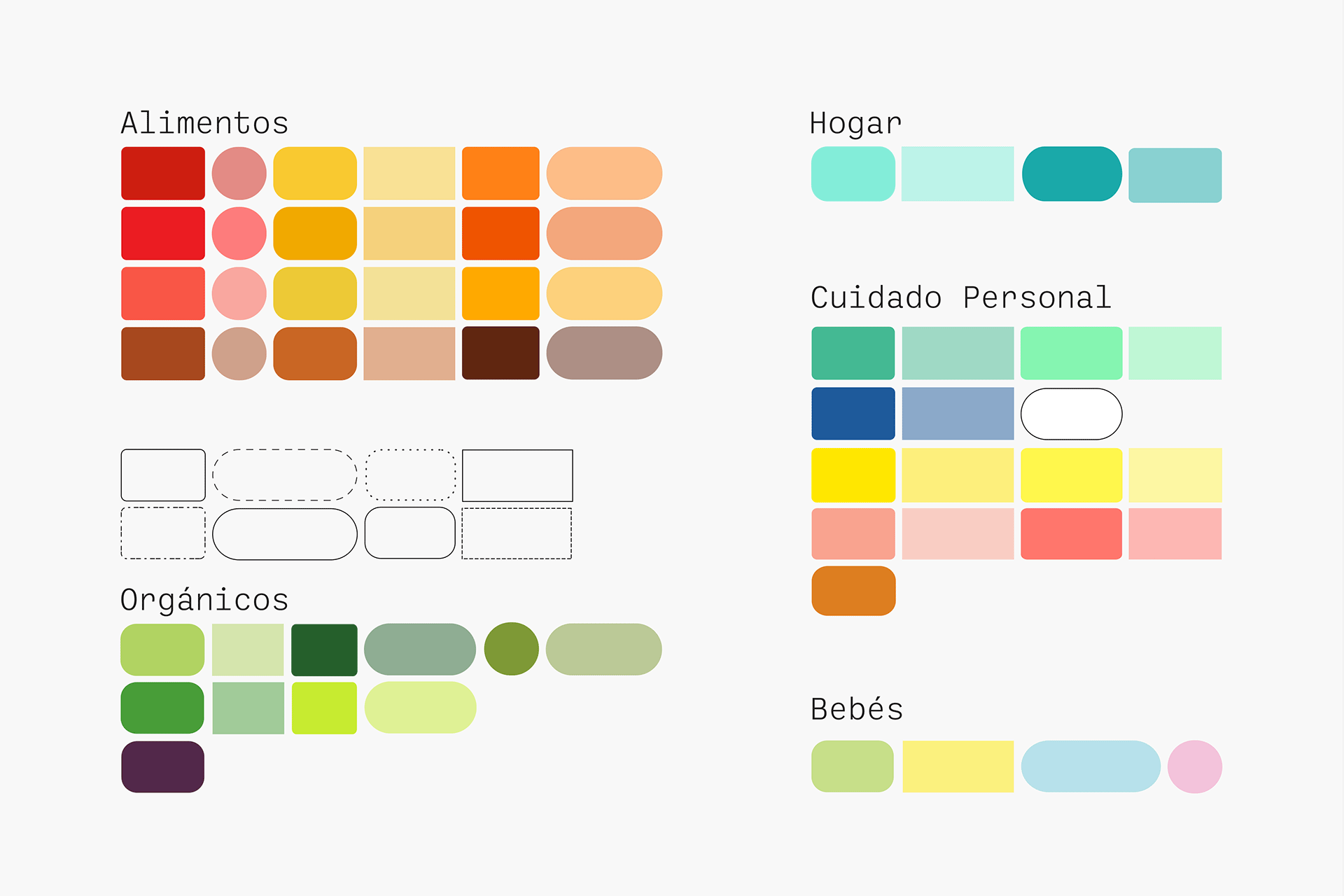 包裝設計圍繞著一個氣泡系統,這個系統混合了有圓角和矩形,不同的顏色,以及不同的筆畫處理。