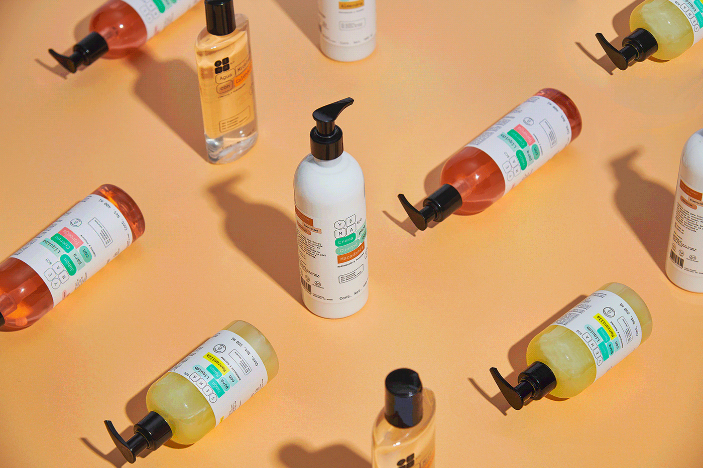 另一個非常好的細節,可以在液體肥皂中欣賞到,是他們如何使用明亮的對比色來表示味道或氣味,就像一個大膽的粉紅色代表“葡萄柚”或深綠色代表“鱷梨”。