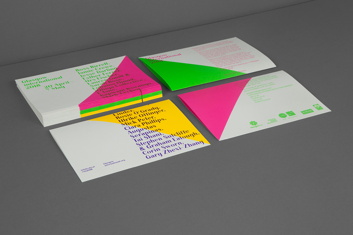 格拉斯哥國際藝術節是蘇格蘭最大的當代藝術節。因果關系設計了一個不容錯過的新標志設計,以增加節日的知名度并反映節日的活力和活力。利用明亮的熒光粉紅色,黃色,綠色和紫色,這是無處不在的鉆石,構成了身份VI形象設計。它的側面略凹,最初來自拉古納(Lacuna)的字母“ i”,這是由格拉斯哥藝術學院畢業生Imogen Ayres設計的字體。在版式中,標題指的是小的區分標記,例如小寫字母“ i”或“ j”上的點。