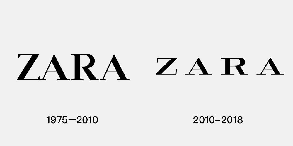 ZARA從1975年成立至今其品牌LOGO已經有過兩次比較明顯的變化,最近一次是2010年6月,當時ZARA將自己的襯線體字標進行了“壓扁”,調整字體間距,并拉長了字體裝飾線條。此后,ZARA開始帶著這個LOGO開啟了全球擴張的步伐。