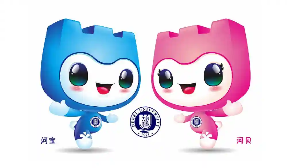 河北大學百年校慶吉祥物由一組卡通形象組成,呈現擬人化特征并富有親和力,取名河寶、河貝,代表河北大學全體學生,寓意學校辦學堅持以學生為本。吉祥物頭部長城圖案,寓意河北大學植根燕趙大地。吉祥物色彩亮麗和諧,造型美觀生動,代表青春、陽光的形象。