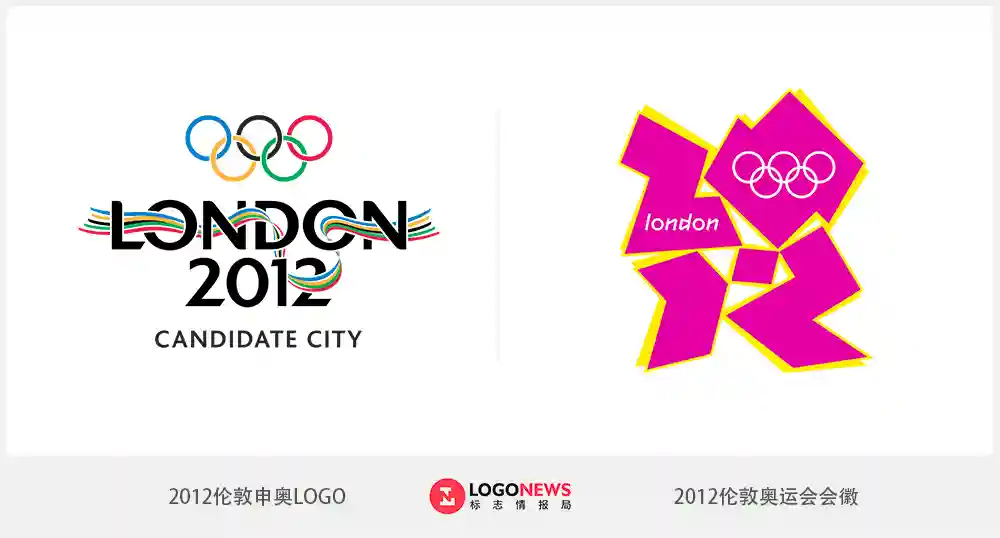 2007年6月5日,倫敦奧組委公布2012年奧運會會徽。會徽對「2012」四個數字進行變形,不同斜塊組合成一個不規則圖形。會徽總共有粉色、藍色、綠色和橙色四種顏色供選擇。會徽體現了奧林匹克精神和對所有人參與奧運會的鼓勵,而且包括文化等更多方面。