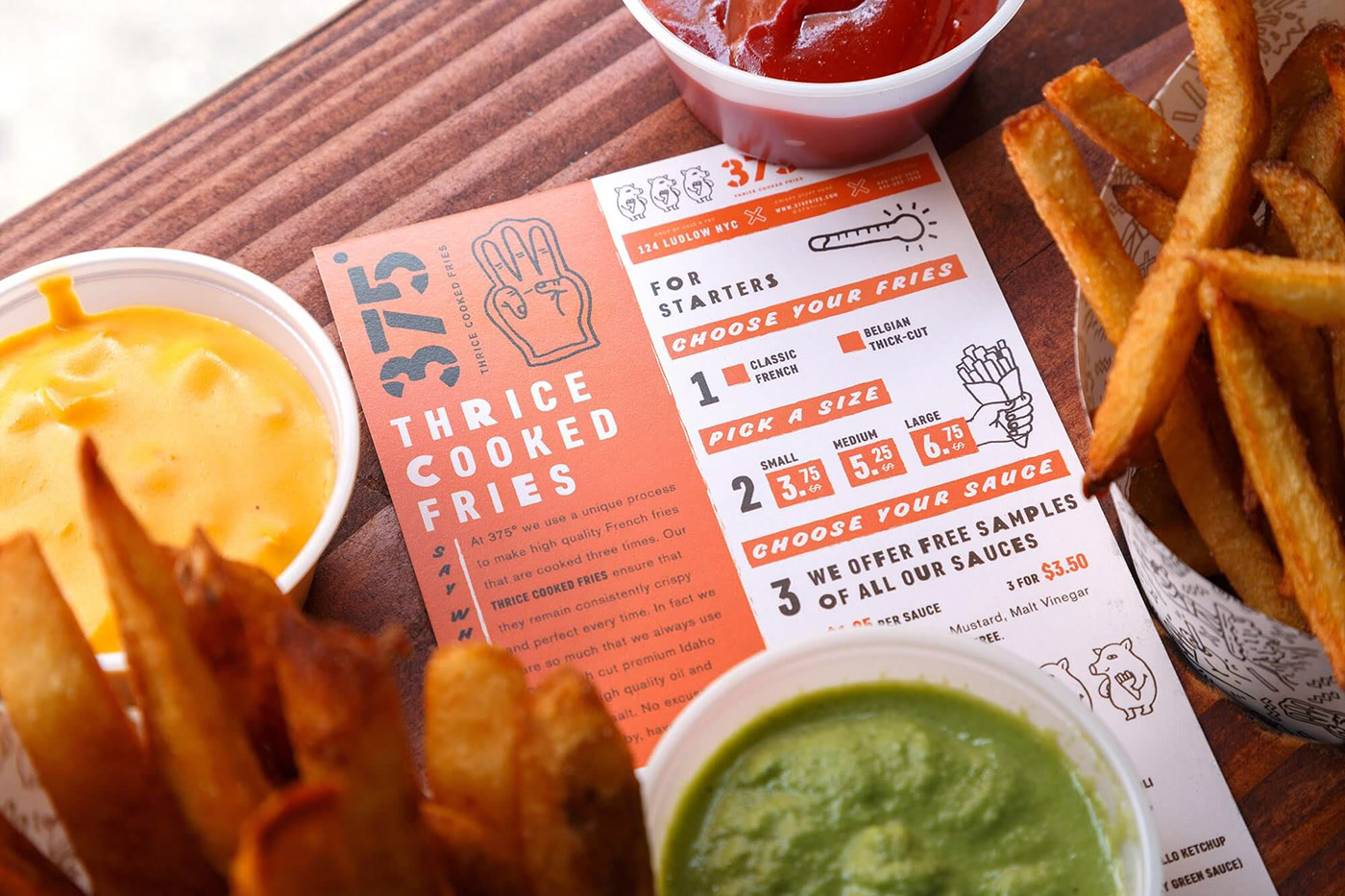 375°是紐約下東區(qū)的炸薯?xiàng)l。他們使用獨(dú)特的工藝制作高品質(zhì)的炸薯?xiàng)l,實(shí)際上以375度進(jìn)行了3次煮熟(哇,您可能不會(huì)猜到)。三次烹飪可確保這些美味始終保持酥脆和完美。每次。我們的目標(biāo)是使375°在紐約擁有最佳炸薯?xiàng)l的聲譽(yù)。三次煮熟的魅力。