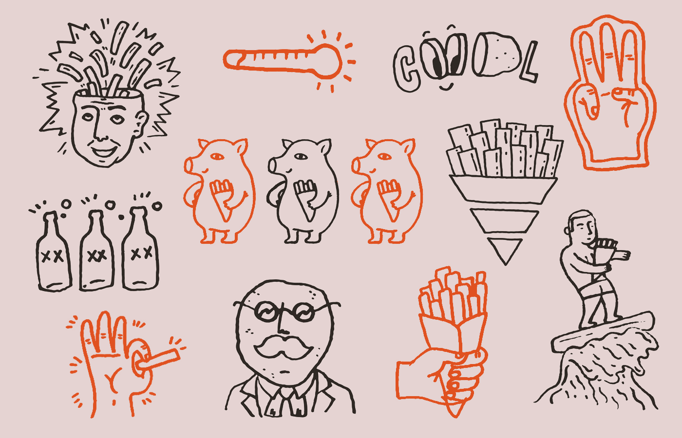 這個(gè)想法是在油炸實(shí)驗(yàn)室中創(chuàng)建一個(gè)狂人的角色,并結(jié)合基思·哈林(Keith Haring)啟發(fā)的插圖來(lái)表達(dá)對(duì)薯?xiàng)l的熱愛。 每個(gè)插圖都引用流行文化或戳戳有趣的事物,例如需求的怪癖。