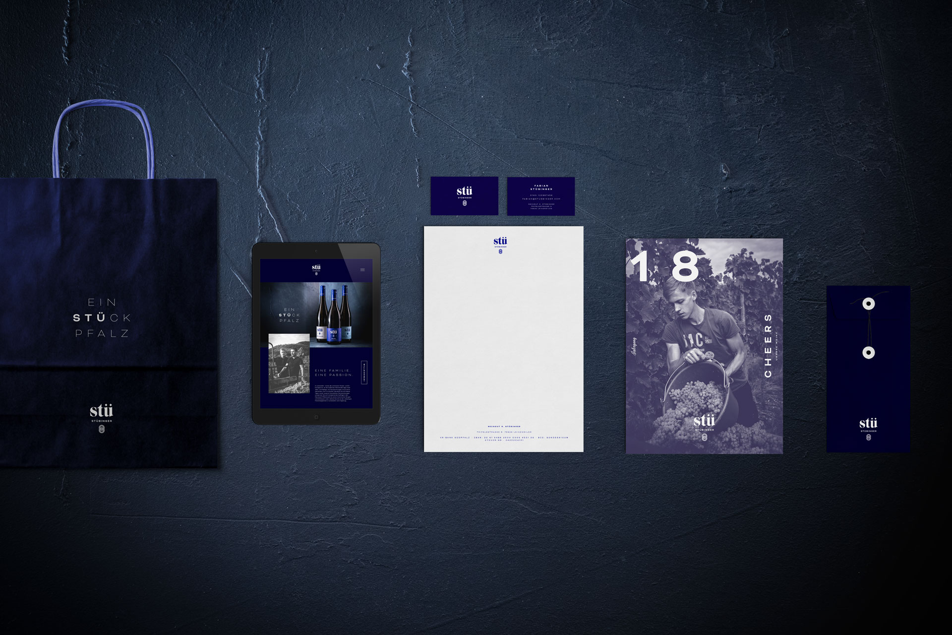 在2018年春季,我們在Leinsweiler(普法爾茨州)會面。當時,FabianStübinger問我們Yummy Stories是否可以在品牌開發(fā),葡萄酒營銷和設計方面支持該酒莊。因為一家人缺乏與以前相貌的認同。新的葡萄酒標簽應獨特,清晰且易于識別。我們一起解決了問題。視覺還原,獨特的版式以及家庭緊密聯系和凝聚力的引用。盡可能少的設計。沒有多余的裝飾。經典而永恒。在酒標的實施中,紙張,印刷和涂飾需要很高的靈敏度,以使設計具有出色的觸感和視覺上的有形感。