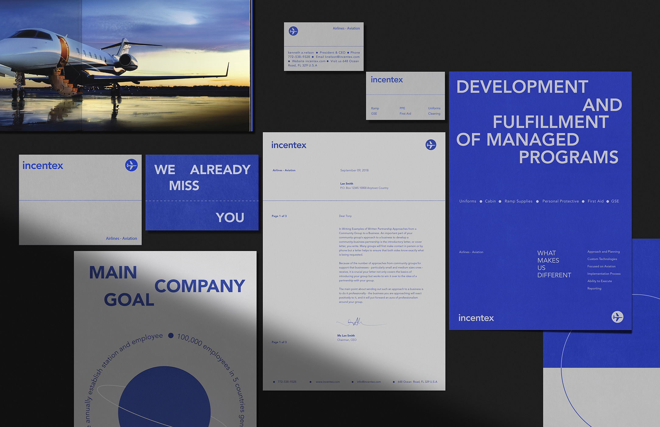 Incentex在業(yè)內(nèi)已20年成為值得信賴(lài)的航空供應(yīng)商,專(zhuān)注于高質(zhì)量產(chǎn)品,包括機(jī)翼上下制服,安全裝備,急救用品,個(gè)人防護(hù)設(shè)備,坡道,GSE…。他們的主要客戶(hù)包括航空公司,地面服務(wù)和貨運(yùn)提供商,F(xiàn)BO,MRO和機(jī)場(chǎng)服務(wù)公司,下面請(qǐng)欣賞航空VI設(shè)計(jì):