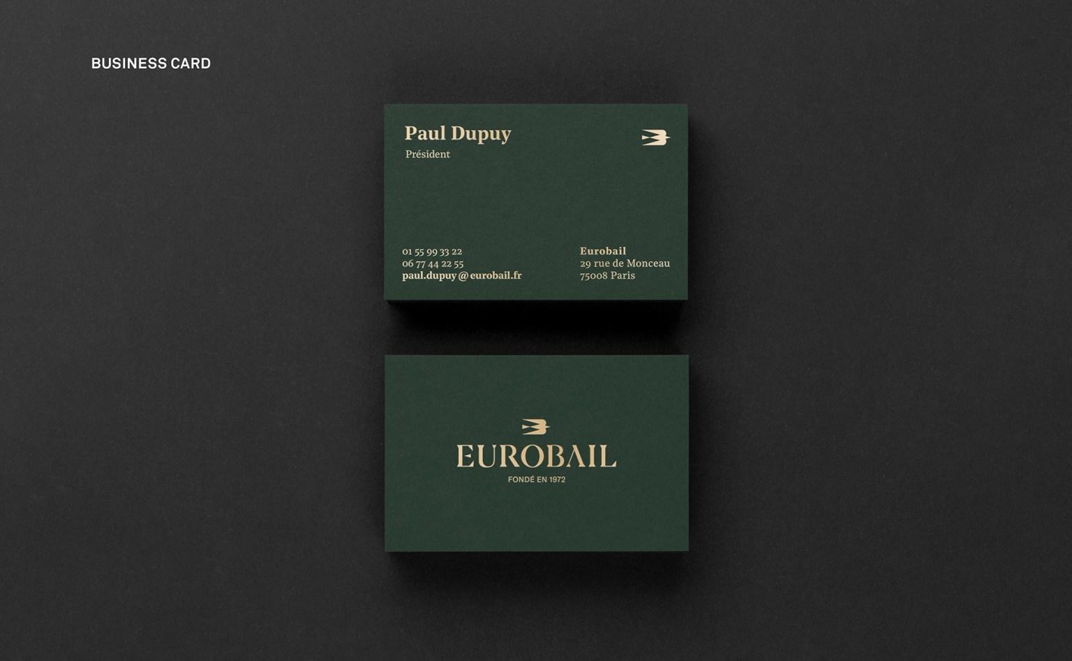 選擇的飛行鳥類形象體現了遠見和投資理念。這只鳥還傳達出謹慎而復雜的力量。標志的幾何結構喚起了裝飾藝術風格的建筑氛圍,并在字母“ E”和“ B”的后面加上了提示。標志傳達了競爭和專業的環境。字體由襯線字體構成,也建立在幾何形式和對比度上。盡管具有清晰的外觀,但在處理字母時仍保留了開放的思想。此外,我們還負責該品牌的藝術指導,并監督了一系列精美文具的生產。我們與Imprimerie du Marais合作進行了名片印刷。它們是使用啞光金箔和染色的玉凸版紙生產的。這種精心設計的生產技術補充并肯定了行業領先品牌的基因。