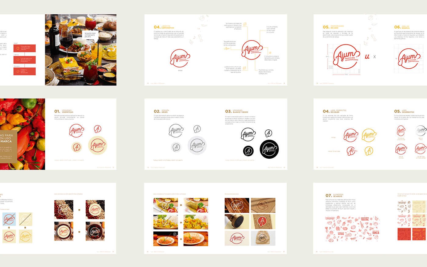 這個Ajum品牌VI形象設計的主要目的是為餐飲品牌創造一個好的視覺形象,以體現品牌的差異優勢,構建差異化認知,增強消費者的印象。