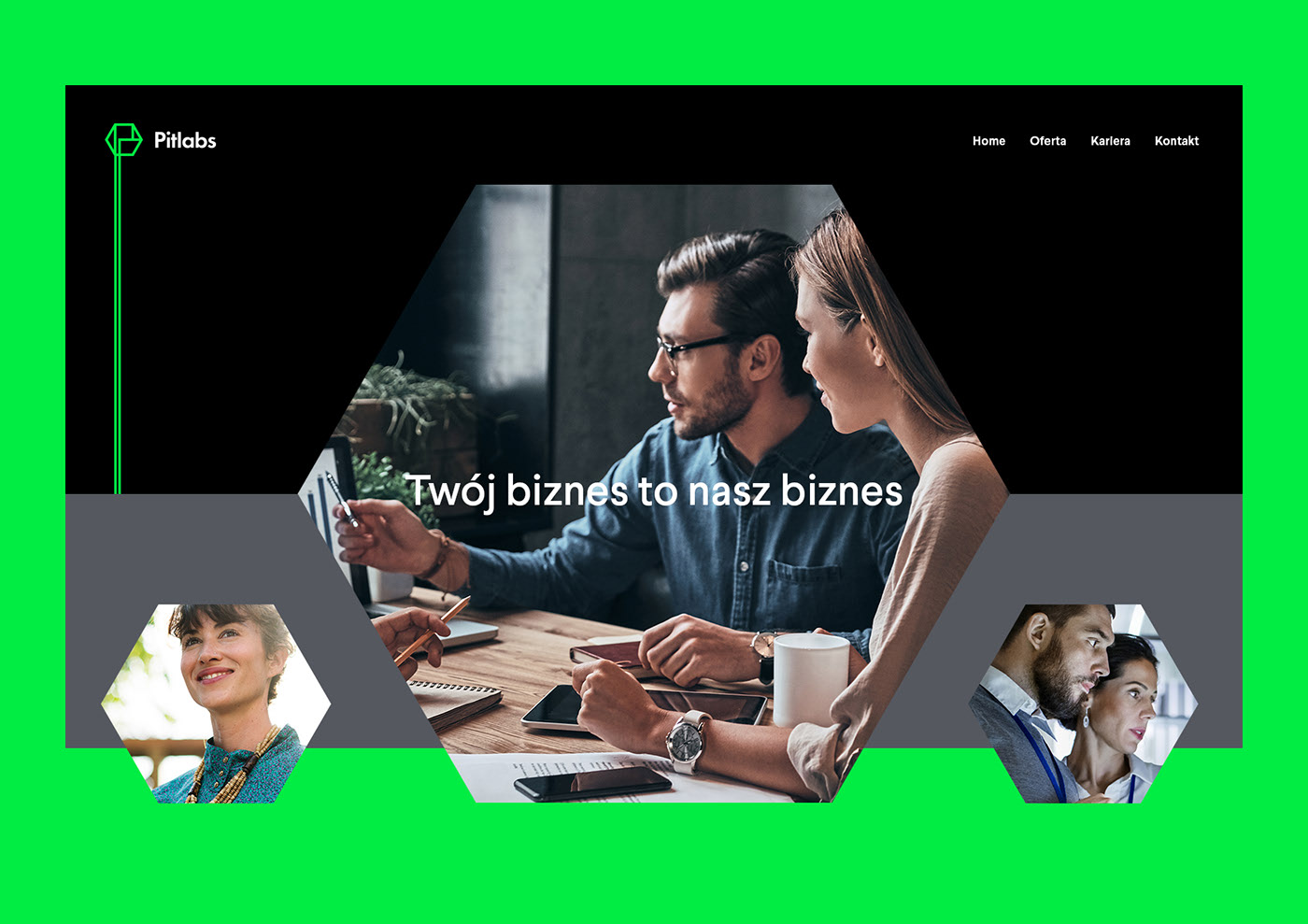 鋒利的形狀賦予清晰度,整個品牌都被封閉在增強穩定性的六角形中。標志內的空格代表公司運營所在的IT部門的多樣性。唯一性由隱藏字母P添加。標記是所謂的Flex,因此它可以更改其形式而不會失去識別力。