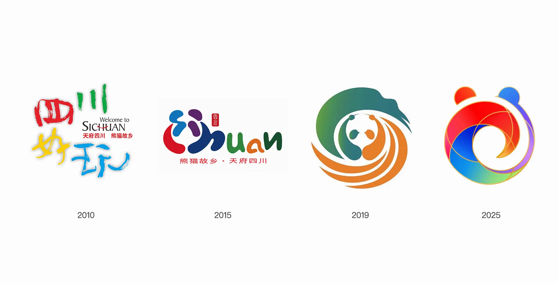 以熊貓輪廓錨定四川標識,太極曲線詮釋“安逸”生活哲學,蜀錦式多彩漸變呼應“錦繡”自然與文化,三者融合,傳遞四川“慢享生活、底蘊厚重”的文旅魅力。