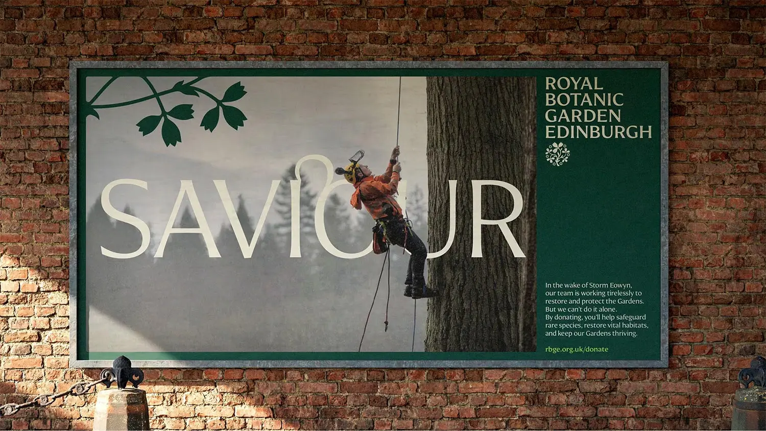 圖形元素以瀕危植物 Sibbaldia procumbens 為靈感,精致的植物紋樣,枝葉舒展、花朵點綴,既呼應(yīng)了植物園創(chuàng)始人最初發(fā)現(xiàn)的植物品種,承載著歷史根源,又生動展現(xiàn)了植物的生機與多樣性,寓意著植物園 “發(fā)現(xiàn)、保護植物,傳播植物知識” 的使命。整體以綠色為主色調(diào),契合植物園的自然屬性,給人以清新、充滿生機的視覺感受,從視覺層面強化了其作為全球植物多樣性研究、保護與教育中心的形象。