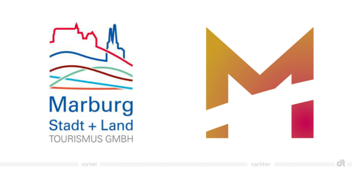 在 Marburg Tourismus und Marketing Gesellschaft 成立過程中引入的標志,由一個下一個排列的彩色輪廓組成,為“Marburg”字樣或“M”圖片標記留出空間,由彎曲的橫穿絲帶。新標志的設計使其可以靈活地用作雨傘和支撐品牌。品牌出現的色譜已被重新定義,排版和圖像也是如此。新創建的線條插圖從此成為城市