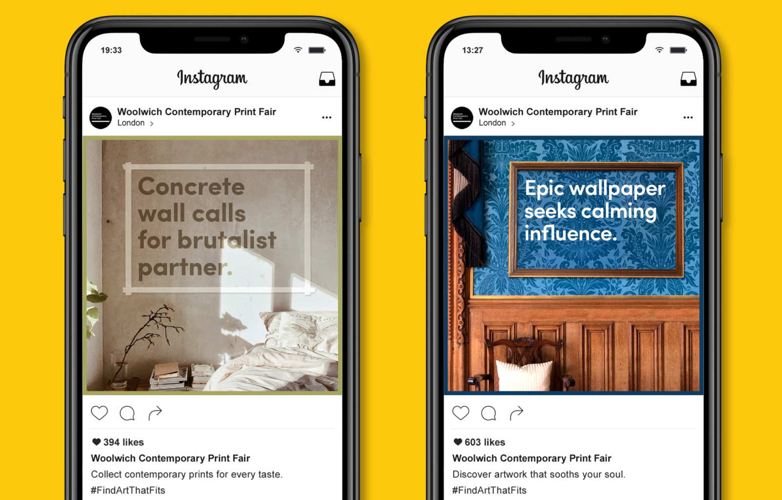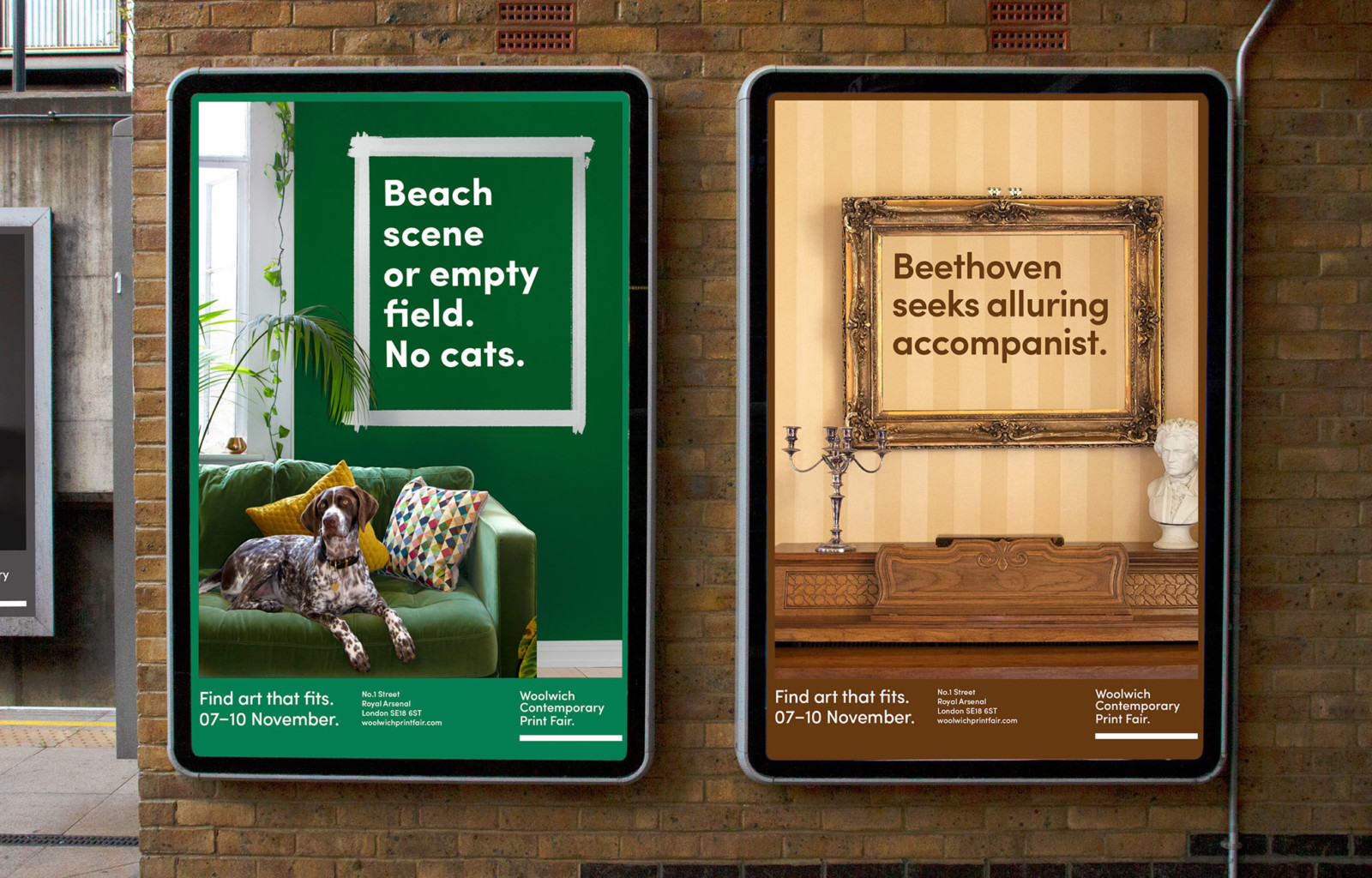 我們的挑戰?在Woolwich當代印刷博覽會上做廣告,這是唯一出售具有現代品味的實惠印刷品的當代博覽會。這個想法始于所有空白墻都是藝術的機會的想法–如果房間有發言權,他們會建議什么藝術?例如,書房的理想圖片與浴室或臥室的圖片不同,依此類推。