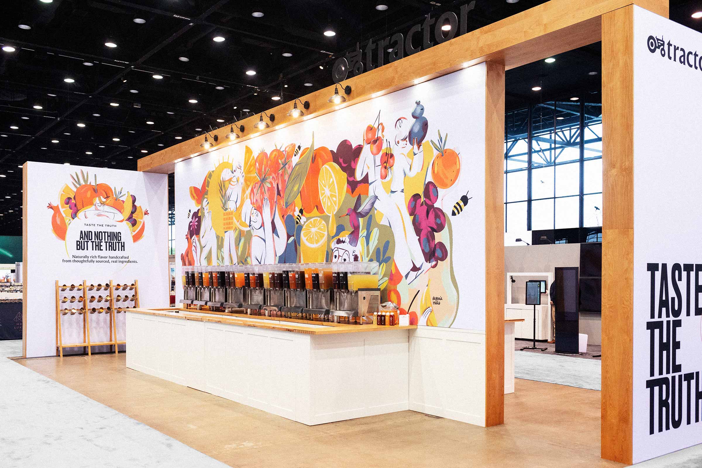 歐根妮婭·梅洛在想象,然后創(chuàng)造拖拉機的展位經驗,為2019年全國餐廳協(xié)會在芝加哥的展覽。尤金妮亞的作品是對拖拉機品牌VI形象的完美補充--豐富的紋理和豐富的生命力,她的插圖為拖拉機的清潔、最小的外觀和感覺注入了溫暖。雖然由此產生的展位吸引了成千上萬的游客的注意,但對于我們來說,真正的成功之處在于見證了Tractor團隊的驕傲,因為他們自信地與世界分享他們的產品和激情。