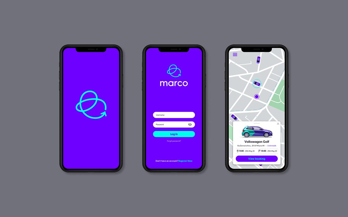 Marco是一個位于意大利的全新無障礙汽車共享平臺。 從小處著手,他們的目標(biāo)是為所有人提供負(fù)擔(dān)得起的投資機(jī)會。 為了應(yīng)對飽和的市場,品牌必須具有硬性和獨(dú)特性。 標(biāo)志設(shè)計簡化了我們從A到B的所有不同旅程,而大膽的調(diào)色板則呈現(xiàn)出友好而自信的品牌形象設(shè)計。